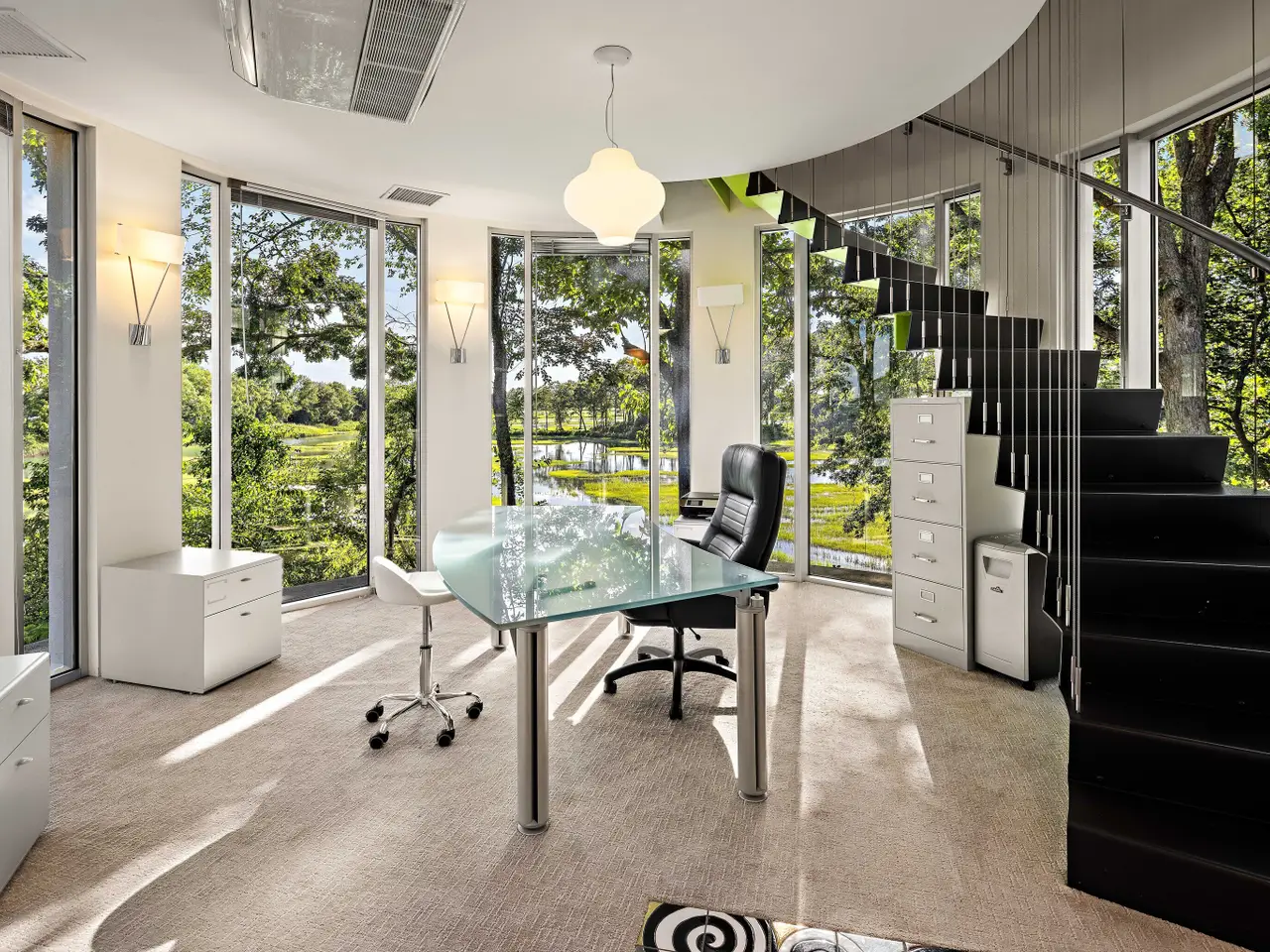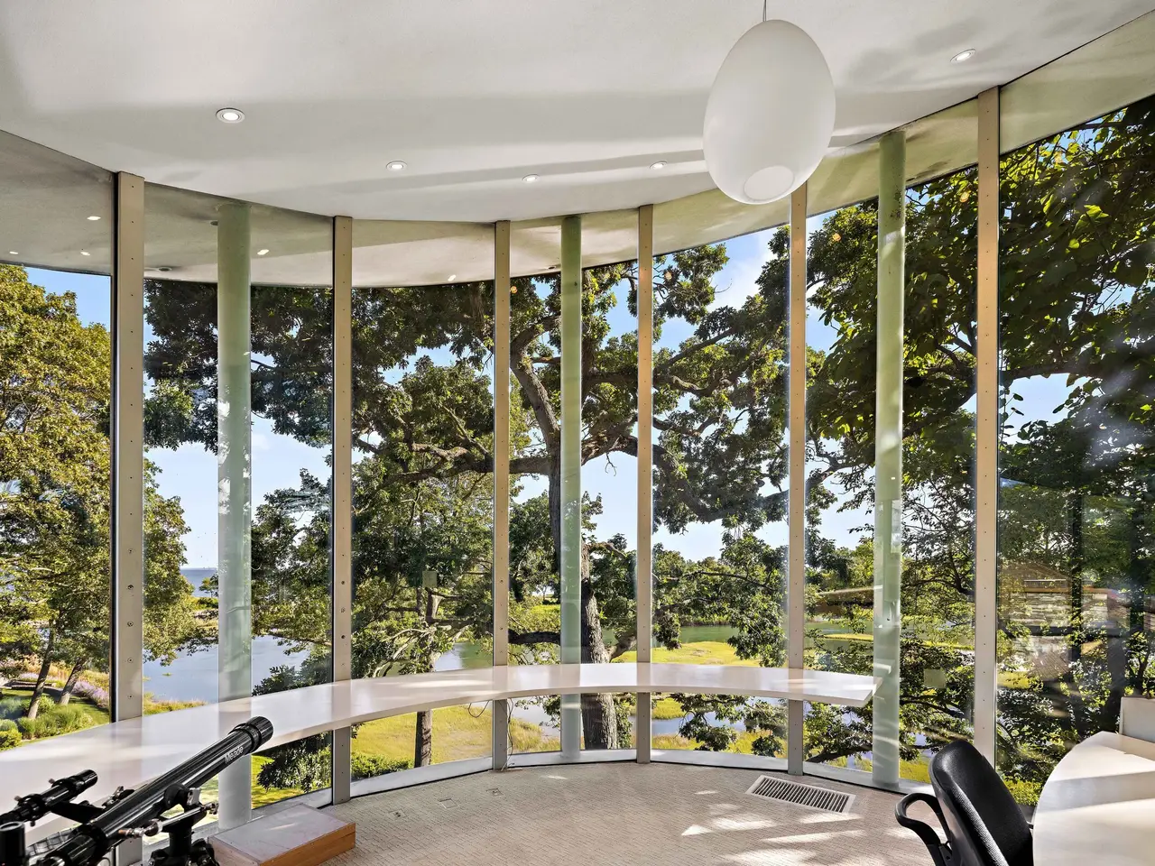 A true Westport icon, 11 Beachside Common is one of the most architecturally distinctive homes on the Connecticut coast-known to anyone who's ever strolled Burying Hill Beach. Set on 2.6 waterfront acres, the property offers sweeping southern views over Sherwood Island and Long Island Sound, with sunsets that rival the Low Country and birdlife that fills the surrounding marsh with movement and sound. With water access for kayaking and paddle boarding, it's a nature lover's paradise wrapped in high design.Originally built in 1971, the home underwent a $13M transformation under acclaimed architect James Biber of Pentagram. The goal: not to create rooms, but to dissolve them. Nearly 9,000 sq ft of open, gallery-like living space is unified by a 150-ft handmade tile path that runs the length of the main level. A soaring central room with exposed aluminum column is flanked by playful architectural elements -domes, portholes, skylight tubes, and a floating staircase.A 3-story tower, designed as the intellectual center of the home, offers 360-degree panoramic views and quiet workspace. This is a home where design, art, and imagination intersect-and where brilliant minds have found inspiration. From Academy Award winners to world-renowned scientists and adventurers, this home has drawn extraordinary lives. If genius gravitates toward whimsy, perhaps it's because whimsy makes room for wonder-and for those bold enough to see differently.