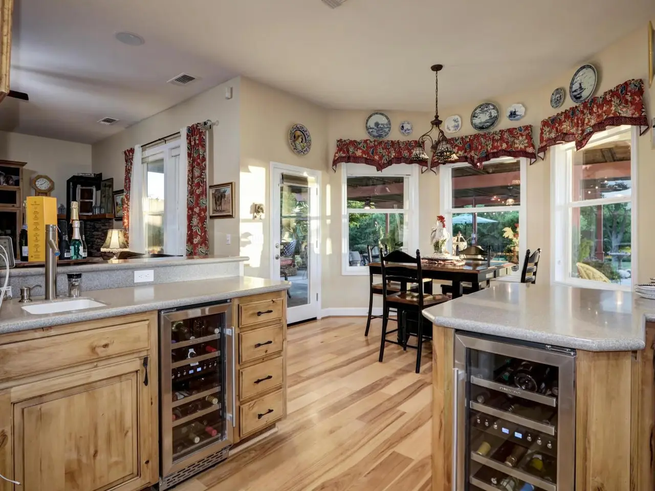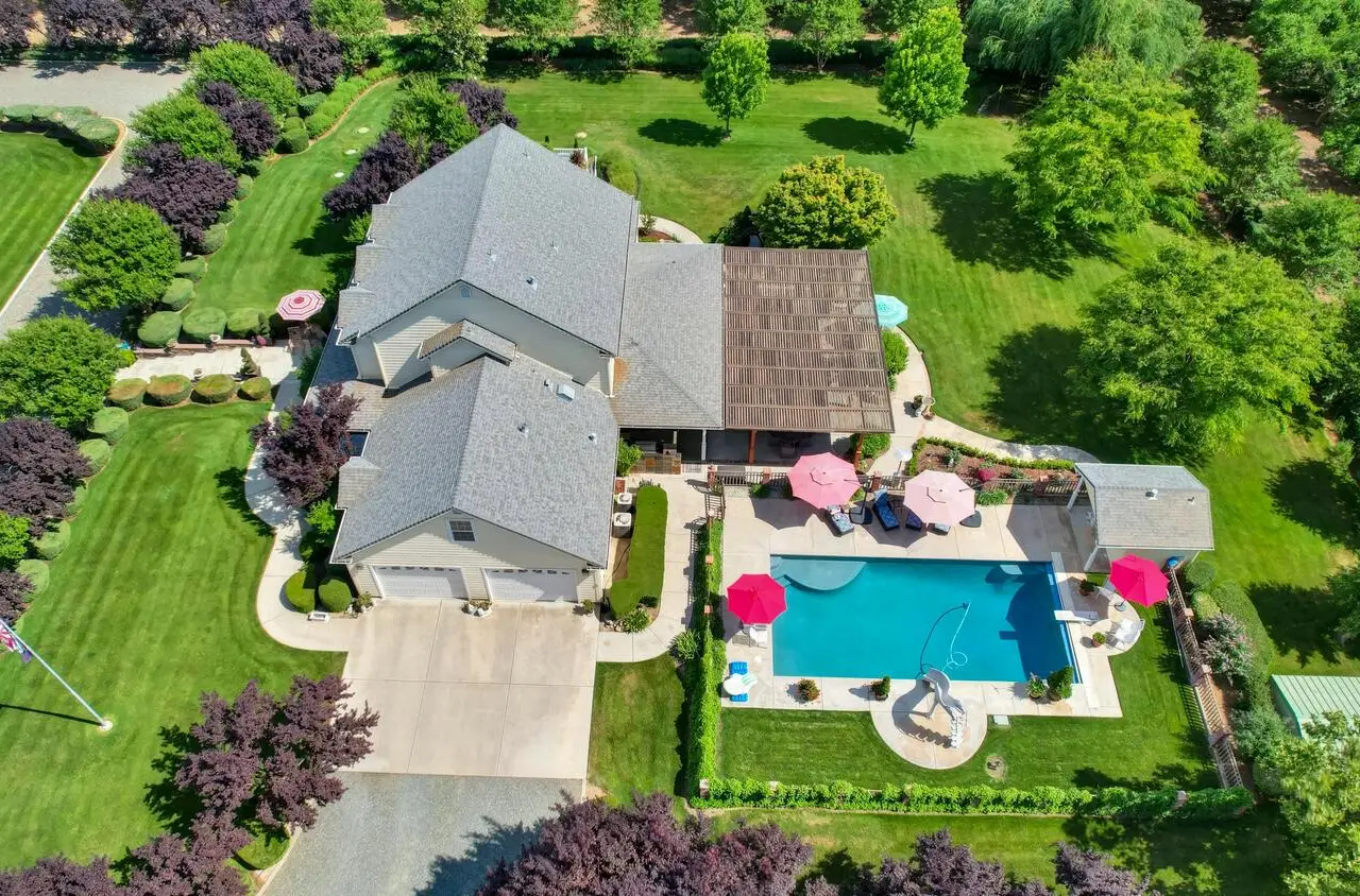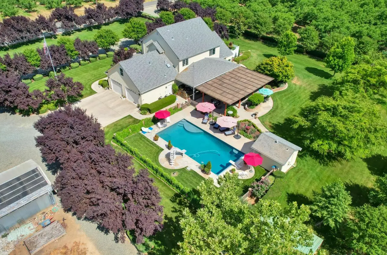 Welcome to a one-of-a-kind estate where wide-open farmland meets breathtaking views of the Sierra Nevada's & Sutter Buttes. From the moment you arrive, the stately home and beautifully landscaped grounds set the stage for something truly special. Only 15 min. to Lincoln, 35 min. to Sacramento, 20 min to Marysville, and 25 min. to Roseville. Mornings with sunrise coffee on the wrap-around porch and ending your evenings with unforgettable sunsets. Inside, the main level offers a private primary suite, home office, formal dining room, and a spacious family room that opens directly to your backyard paradise. Designed with entertaining in mind, this property has it all two outdoor kitchens with custom touches, a sparkling fenced saltwater pool and pool house, an expansive patio with a signature fire pit, and even a tranquil koi pond with a filtration system. Towering walnut trees frame two sides of the property, adding both privacy and character. For those who love space and functionality, you'll also find a detached 2.5-car garage, a metal barn with corrals, a historic WWII bunkhouse, covered RV storage, and a complete water treatment system with storage tank. This is more than a home it's a lifestyle, a retreat, and a rare opportunity to own something truly remarkable.