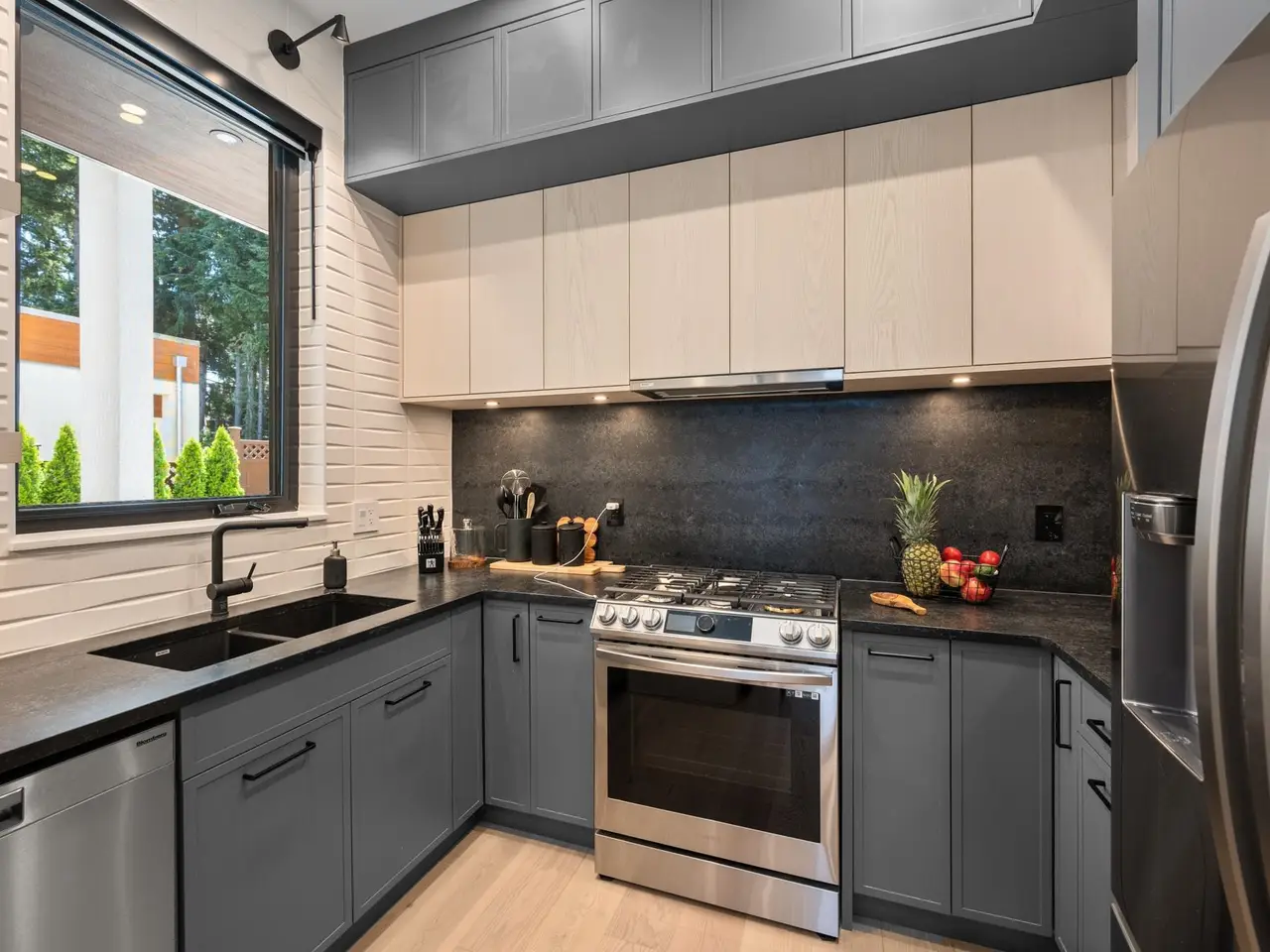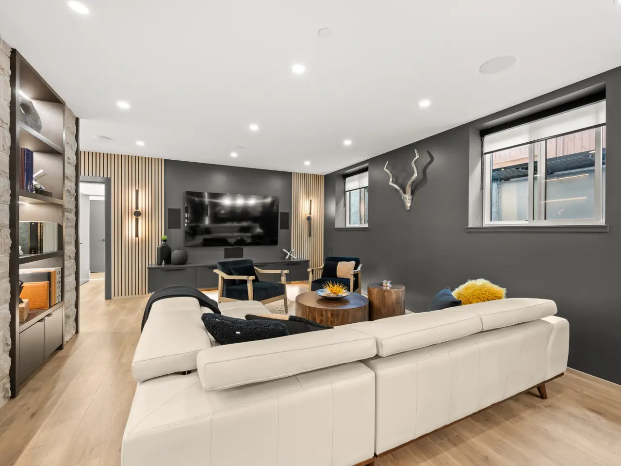 Stunning design & quality construction by Rychter Custom Homes. Honey-coloured hardwood floors, floating staircase & extensive wood features are just the start. Radiant heat, A/C, automated blinds, Control 4- smart home, on demand H/W, Retractable B/I Vac, Generac Generator, Shinnoki Panel Cabinetry with Integrated Liebherr Fridge, wine cooler & 24" Freezer. Fisher Paykel kitchen appliances, B/I Coffee/Espresso & Steam Oven, Spice kitchen. Covered outdoor living space with fireplace and b/i barbecue station. Primary suite has open glass wall to the sundeck with view of the mountains & ocean. Rooftop deck is perfect for entertaining. 1-bed legal suite is also registered with Airbnb. Bsmnt offers rec room with wet bar, wine storage & sauna.