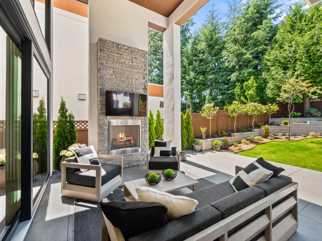 • Covered outdoor living space with fireplace