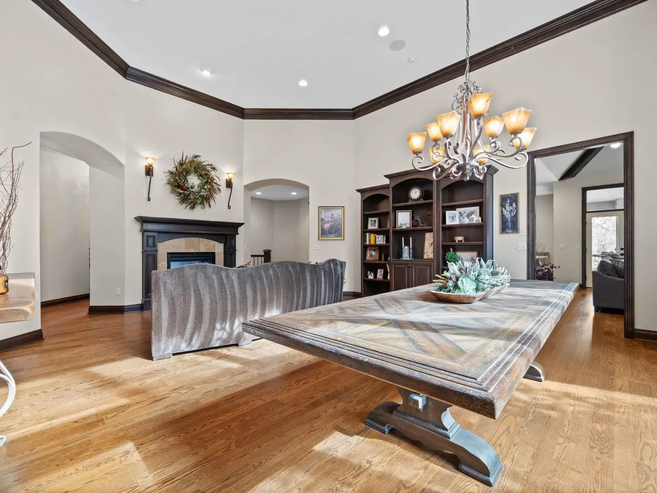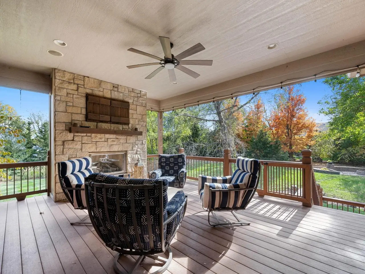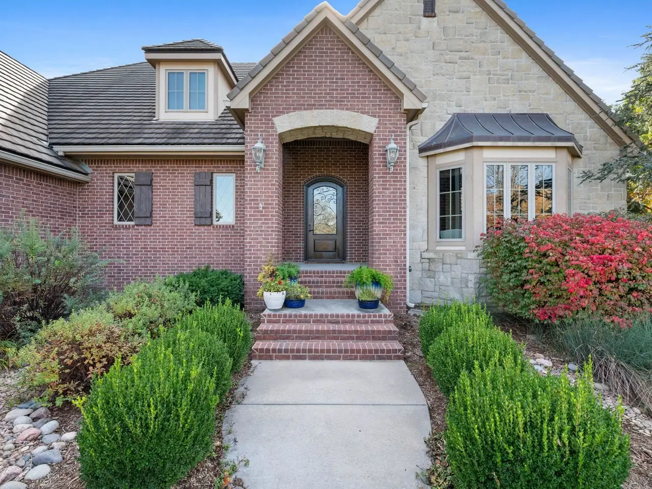 Welcome Home to 8219 W. Meadow Park, located in the sought-after gated Fossil Rim Estates neighborhood of west Wichita. This full brick and stone residence combines craftsmanship, comfort, and natural beauty on nearly one acre backing to mature trees. Designed for everyday living and memorable entertaining, the home offers 6 bedrooms, 4.5 baths, and approximately 6,082 sq ft of finely finished space. Step inside to find architectural detail at every turnarched entries, custom millwork, crown moulding, and gleaming hardwood floors. The open main level showcases a formal living and dining area with built-ins, gas fireplace, and tall windows that frame peaceful tree views. The adjoining hearth room features a stone fireplace with beam accents, creating a warm gathering space connected to the gourmet kitchen. Well-appointed for cooks and hosts alike, the kitchen includes granite countertops, double ovens, gas cooktop, stainless appliances, two large islands, and a walk-in pantry with prep sink. A main-floor office provides an ideal workspace, while the laundry room offers built-in cabinetry, sink, and drop-zone bench. The spacious primary suite is a private retreat with a coved, lighted ceiling and a wall of windows overlooking the wooded yard. The spa-style bath offers dual vanities, jetted tub, custom tile shower, and an impressive walk-in closet with built-ins. Two additional bedrooms and a full bath complete the main level. The finished walk-out basement extends the living space with a large family room centered around a stone fireplace, full wet bar with granite counters and slate flooring, billiards area, exercise room, two bedrooms, concrete safe room, and abundant storage. Natural light and patio access make the lower level ideal for entertaining or relaxation. Outdoor living shines here with a covered composite deck featuring a stone fireplace, perfect for year-round enjoyment, and a lower brick patio surrounded by landscaped beds. The expansive yard includes fencing, fire pit, and a private well and sprinkler system. The side-load three-car garage offers epoxy flooring and extra workspace. A concrete tile roof and full masonry exterior provide exceptional durability and timeless curb appeal. Located in Maize School District 266, within minutes of Sedgwick County Park, NewMarket Square shopping and dining, Ridge Road corridor amenities, and the Northwest YMCA, this property delivers the perfect balance of privacy and convenience. Experience refined living in Fossil Rim Estateswhere design, setting, and quality craftsmanship come together in one remarkable west-side Wichita address.