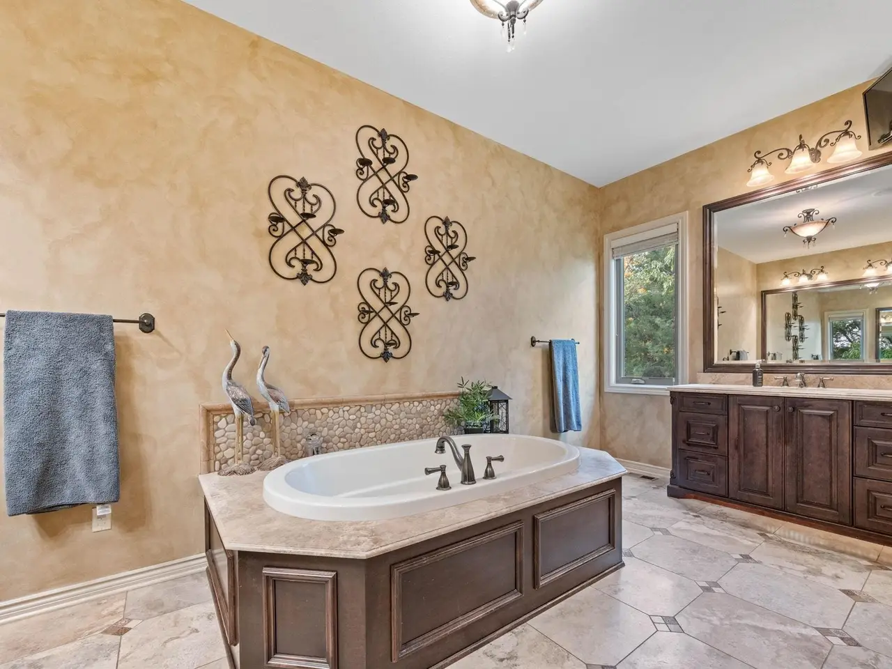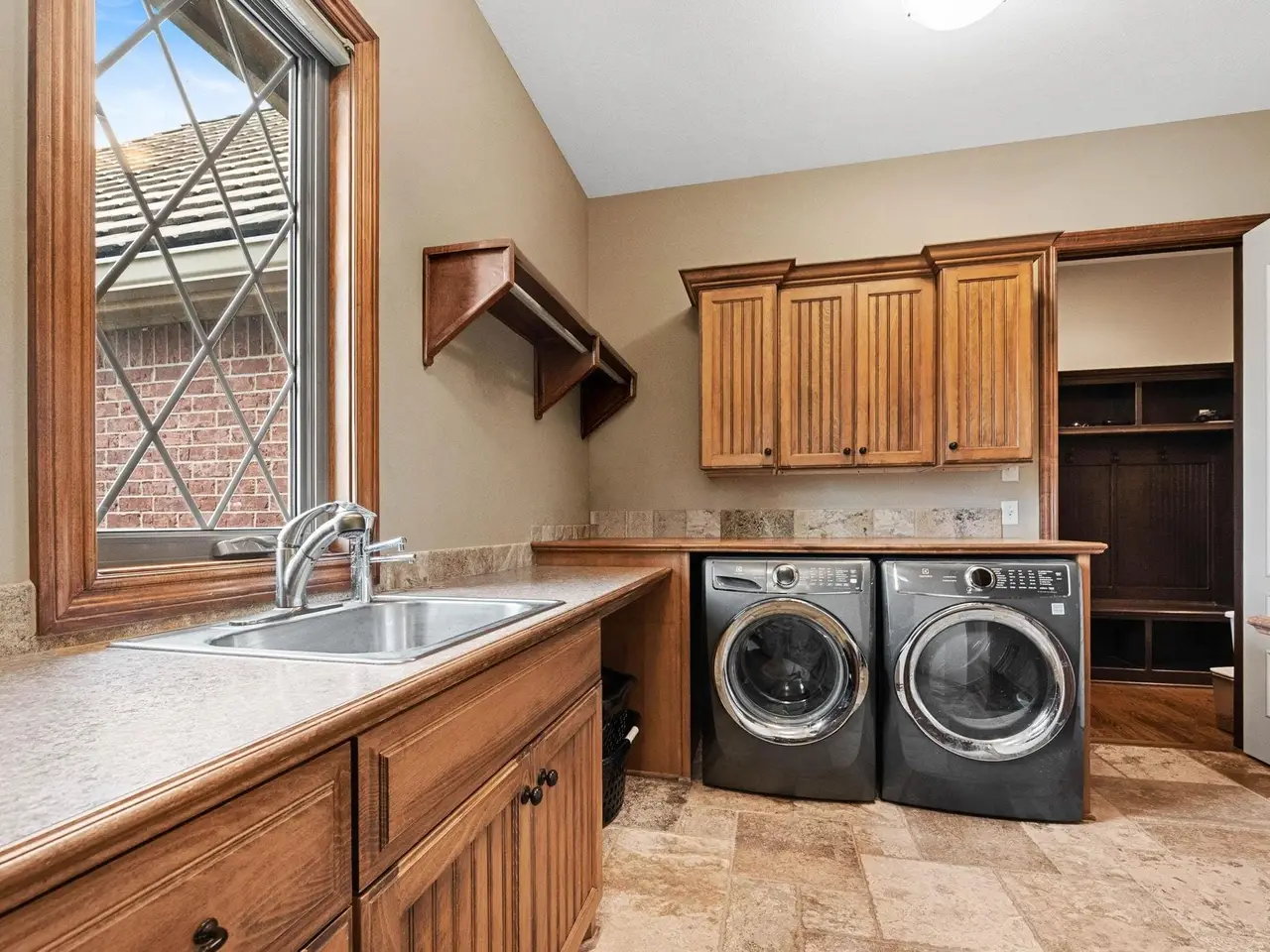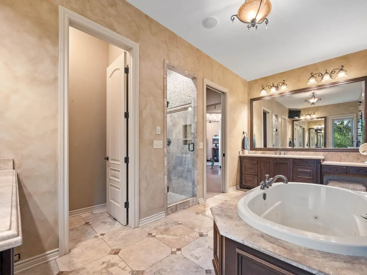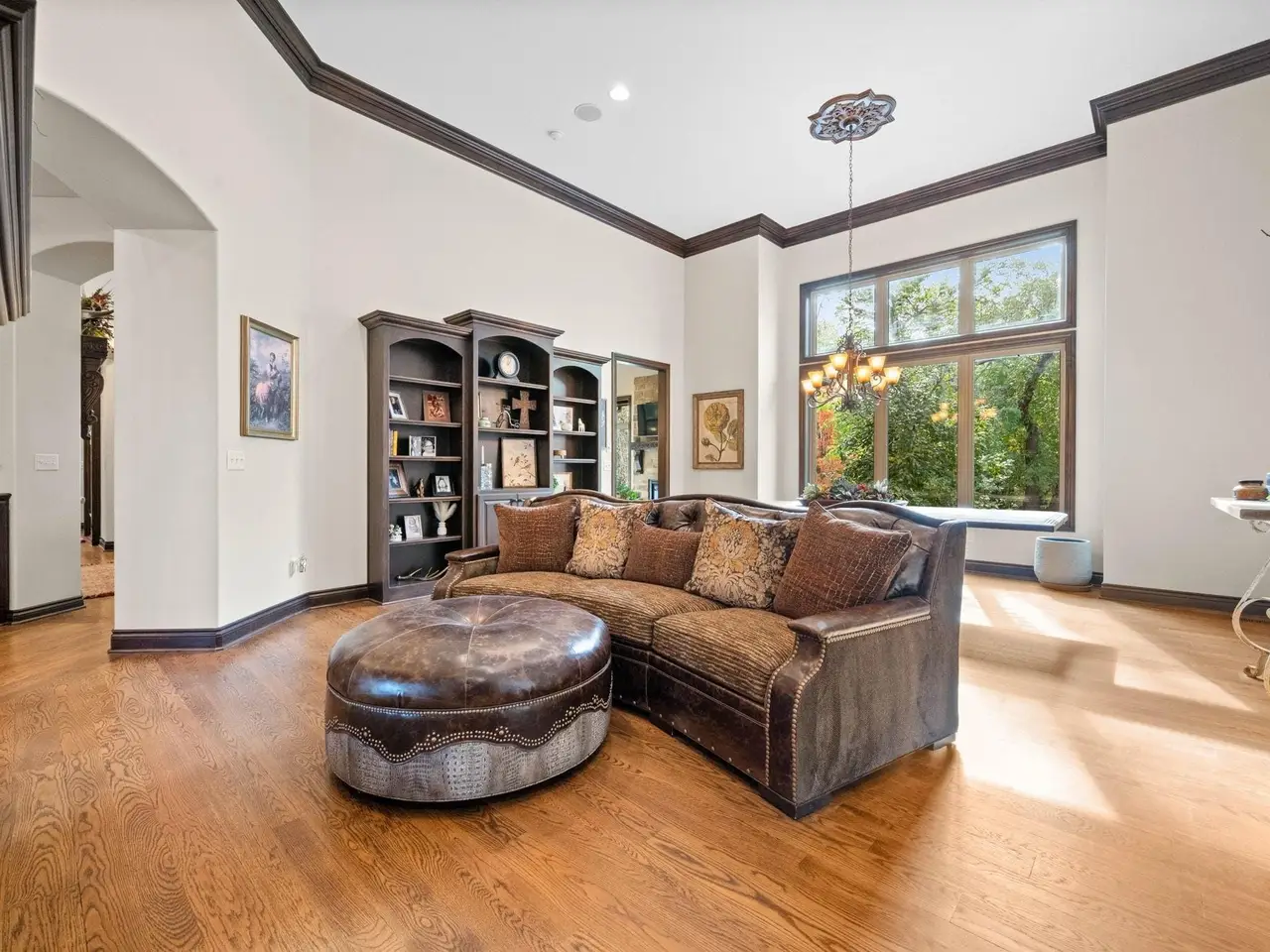 Welcome Home to 8219 W. Meadow Park, located in the sought-after gated Fossil Rim Estates neighborhood of west Wichita. This full brick and stone residence combines craftsmanship, comfort, and natural beauty on nearly one acre backing to mature trees. Designed for everyday living and memorable entertaining, the home offers 6 bedrooms, 4.5 baths, and approximately 6,082 sq ft of finely finished space. Step inside to find architectural detail at every turnarched entries, custom millwork, crown moulding, and gleaming hardwood floors. The open main level showcases a formal living and dining area with built-ins, gas fireplace, and tall windows that frame peaceful tree views. The adjoining hearth room features a stone fireplace with beam accents, creating a warm gathering space connected to the gourmet kitchen. Well-appointed for cooks and hosts alike, the kitchen includes granite countertops, double ovens, gas cooktop, stainless appliances, two large islands, and a walk-in pantry with prep sink. A main-floor office provides an ideal workspace, while the laundry room offers built-in cabinetry, sink, and drop-zone bench. The spacious primary suite is a private retreat with a coved, lighted ceiling and a wall of windows overlooking the wooded yard. The spa-style bath offers dual vanities, jetted tub, custom tile shower, and an impressive walk-in closet with built-ins. Two additional bedrooms and a full bath complete the main level. The finished walk-out basement extends the living space with a large family room centered around a stone fireplace, full wet bar with granite counters and slate flooring, billiards area, exercise room, two bedrooms, concrete safe room, and abundant storage. Natural light and patio access make the lower level ideal for entertaining or relaxation. Outdoor living shines here with a covered composite deck featuring a stone fireplace, perfect for year-round enjoyment, and a lower brick patio surrounded by landscaped beds. The expansive yard includes fencing, fire pit, and a private well and sprinkler system. The side-load three-car garage offers epoxy flooring and extra workspace. A concrete tile roof and full masonry exterior provide exceptional durability and timeless curb appeal. Located in Maize School District 266, within minutes of Sedgwick County Park, NewMarket Square shopping and dining, Ridge Road corridor amenities, and the Northwest YMCA, this property delivers the perfect balance of privacy and convenience. Experience refined living in Fossil Rim Estateswhere design, setting, and quality craftsmanship come together in one remarkable west-side Wichita address.