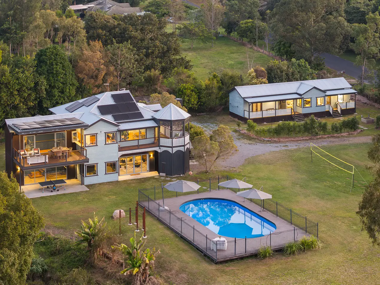 An inspired display of quality design, this beautifully renovated Queenslander home and accompanying spacious second residence deliver creative and versatile living at its very best. These superb family homes have been crafted for a tranquil and sustainable acreage experience and feature flowing floorplans adorned with high-end finishes, ample entertainment areas and relaxing views over the breathtaking surrounding landscapes. The main residence is an impressively renovated Queenslander that's been beautifully-designed to provide a flexible dual-living space with two self-contained levels and/or a large family home, and an emphasis on alfresco entertaining. It features a light-filled aspect and rare to this area, northerly mountain views. The upper layout includes three bedrooms, a quality kitchen and an easy flow to the outdoor spaces where there is a choice of areas to enjoy the countryside vistas. On the lower level is an oversized main bedroom, additional rumpus/living space, kitchenette and music room. The second home is full-sized in its scale and design and would be ideal for rental income and/or multi-generational living, even work from home or home business! Tastefully designed interiors feature two good-sized bedrooms, an up-to-date kitchen and full length verandah taking in the beautiful scenery with views to the mountain tops. There is also a large shed that can be used as a gym or workroom, flat usable house yard with inground pool and a seasonal creek providing plentiful water for growing fruit and veggies in the fertile soils. This property represents a rare prospect offering tremendous flexibility for a dual-living arrangement, a multi-investment or home-plus-income. It is private and secluded yet is just five minutes to Samford Village, with the school bus stop right at the front gate, and just 27km to Brisbane City. Property highlights: - An idyllic 3.75-acre property amid beautiful natural bushland - Renovated three-bedroom Queenslander with mountain range views - Self-contained lower level with bedroom, kitchenette and living space - Separate modern two-bedroom residence ideal for guests or rental - Wide entertainment decks that all enjoy the scenic bush outlooks - A flat usable house yard and swimming pool with poolside deck - Large powered shed that's ideal for a gym, workshop or office space - Rolling grounds plus a seasonal creek with swimming hole - School bus stop at the front gate, 6-minute drive to Samford Village. Whilst all care has been taken to ensure accuracy, the Selling agents confirm that they cannot guarantee accuracy of the same and accept no liability (express or implied) in the event that any information contained in the document or provided within is inaccurate. The Seller and Selling agent make no representation and give no warranty that the information provided is accurate. Parties must ensure they make their own due diligence enquiries to satisfy themselves about the accuracy of the information. This information provided is indicative only and must not be relied upon unless confirmed by a party through their own due diligence.