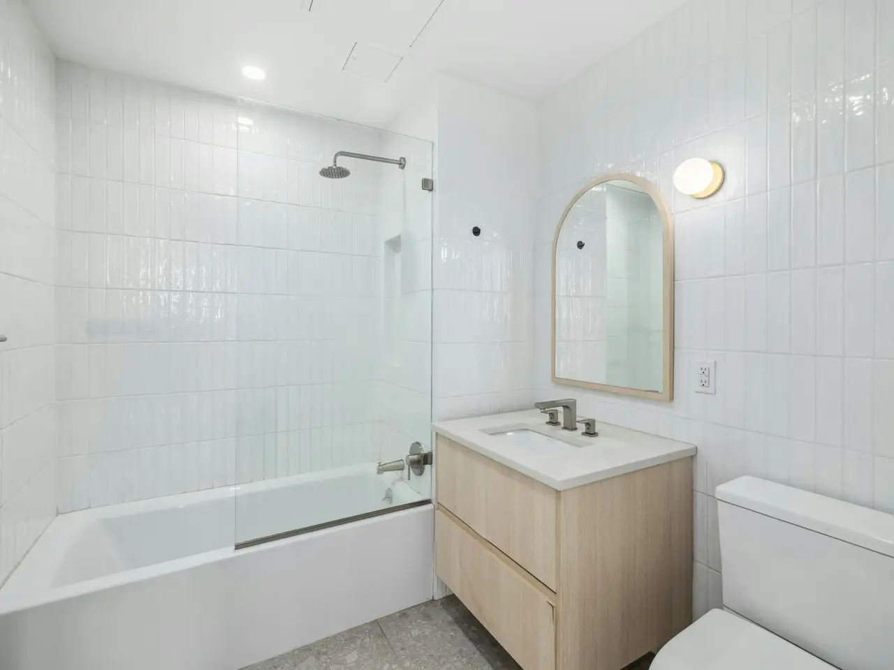 Welcome to Apartment #7M at 8 Marcy Avenue! Please inquire via Street Easy to view. This 1 bedroom/1 bathroom apartment boasts hardwood flooring throughout, large windows with bright exposures, and in-unit laundry. Entering the apartment, you will first come across the beautifully renovated kitchen, complete with marble countertop, and a full suite of full sized appliances. The living room is airy and bright, containing a floor-to-ceiling exposure with stunning views into Manhattan. The bedroom contains a large closet and another west-facing window. Rounding out the apartment is the full bathroom, which is completely modern and features a soaking tub. The in-unit washer/dryer can be found in a closet off of the bedroom. 8 Marcy Avenue is home to many modern amenities including a lush rooftop, fitness center, common lounge, resident workspaces, laundry rooms, package room, bike storage and a garage. Transportation is nearby with the Metropolitan Av G-train and the Lorimer Av L-train. Please note that the photos are of a similar unit in the building. First months rent and security deposit are due with lease signing.  $25/month for pets  $20/person for credit check when applying