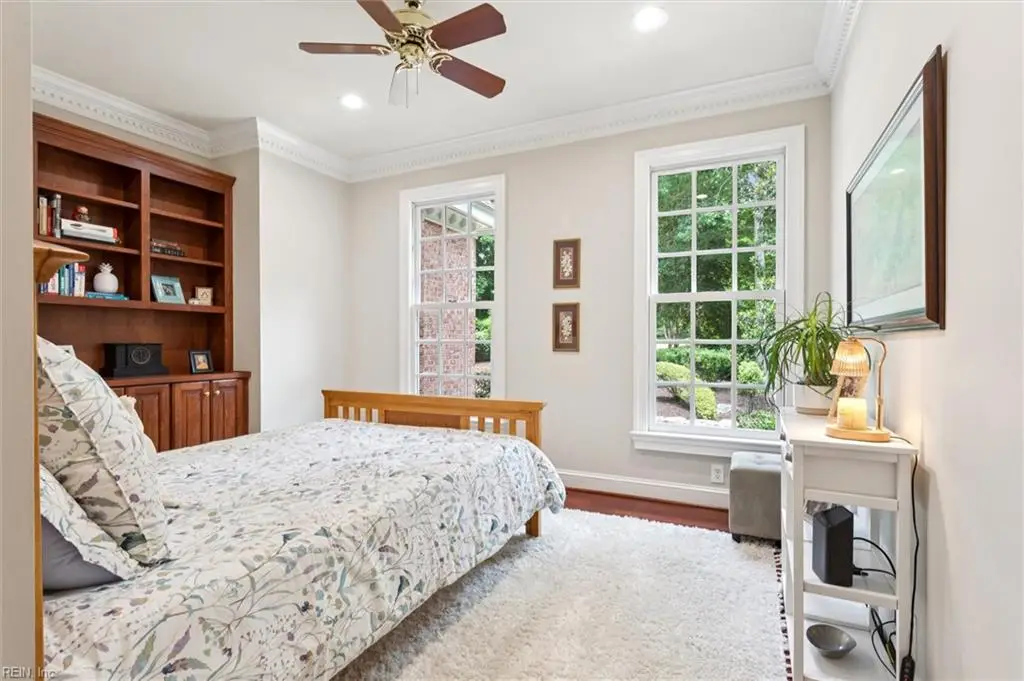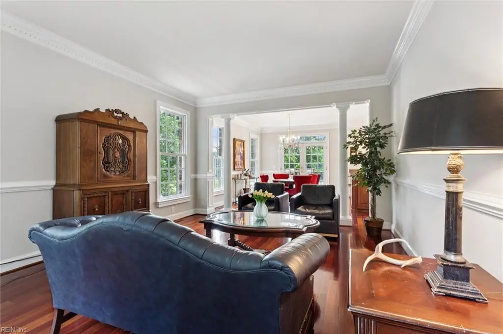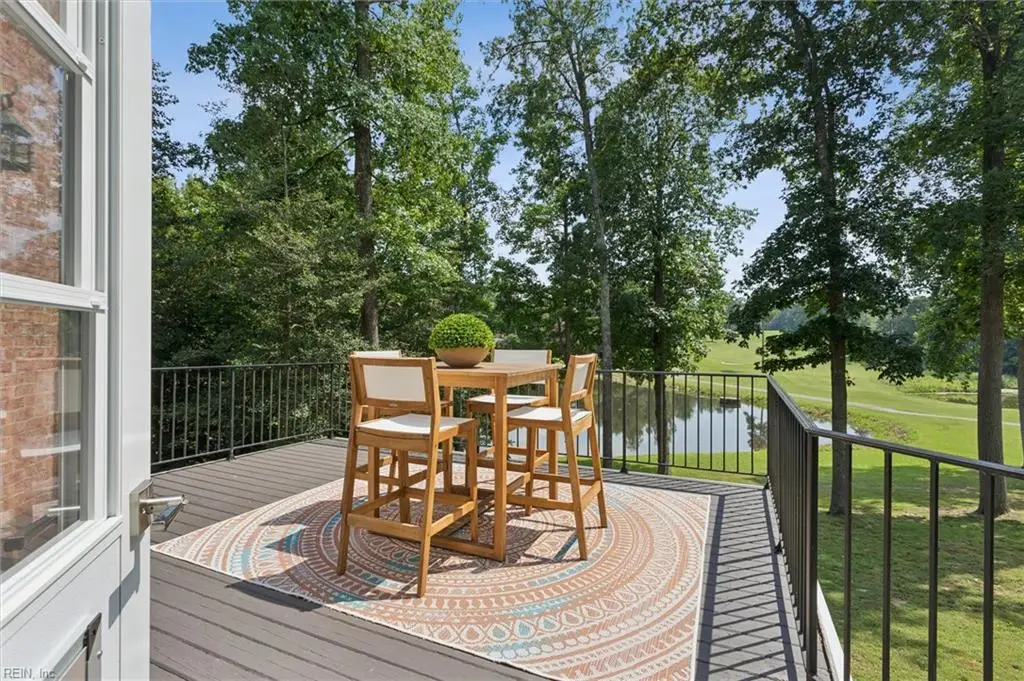 UNRIVALED GOLF AND WATER VIEWS, plus exceptional privacy, are found in this all-brick home offering breathtaking vistas of the 5th hole of the Blue Heron golf course and No. 15 of the Blackheath course. With fairways, greens and three tranquil ponds, this truly is one of the most spectacular settings in Ford's Colony! Inside, the space is defined by exquisite millwork and refined finishes. The great room with a cathedral ceiling and dramatic lighting opens to an expansive deck overlooking the views. A chef's kitchen features rich inset cabinetry and a professional-grade Viking range. Cherry floors and intricate moldings elevate the formal living and dining rooms. The four-season sunroom is perched high above the golf course and water for year-round enjoyment. A first-floor bedroom with an adjacent full bath doubles as an ideal office. Upstairs, the spacious primary suite offers a custom California closet, plus two additional bedrooms and a large bonus room.