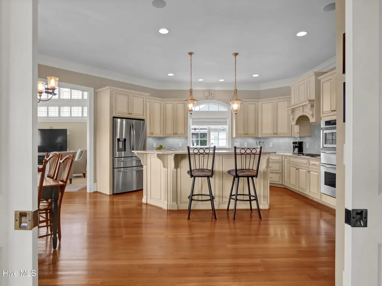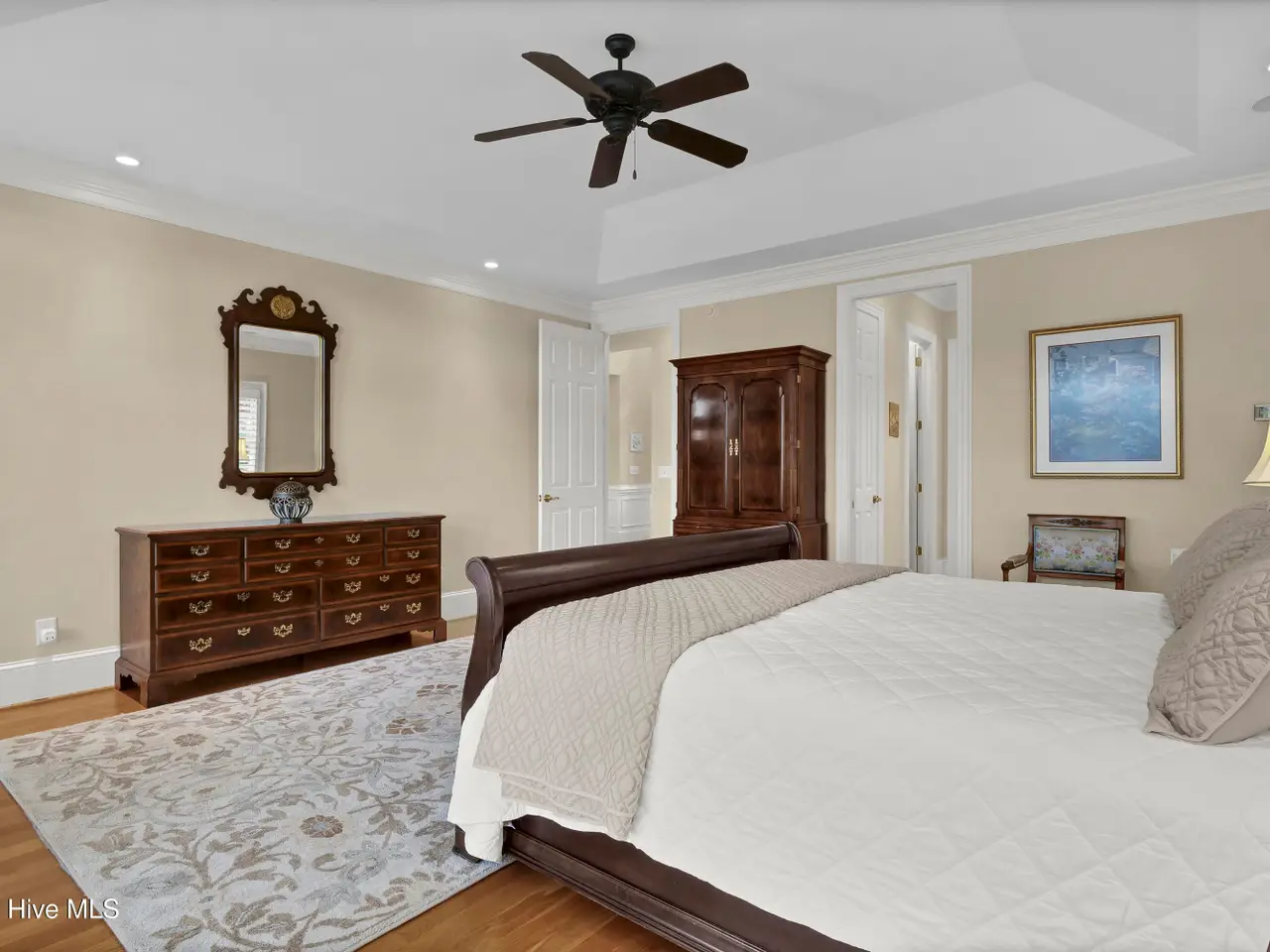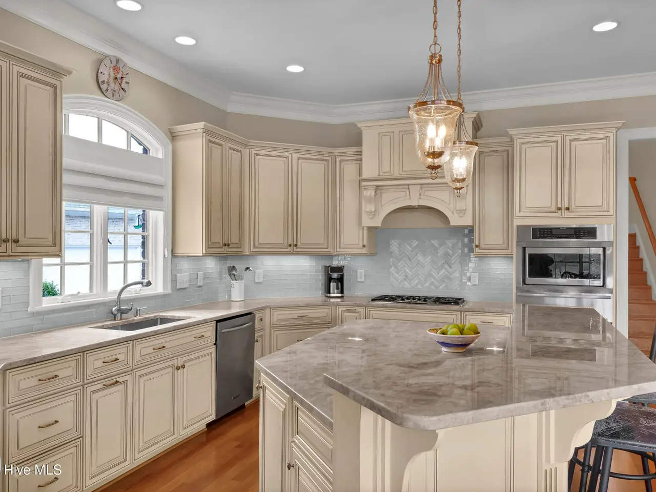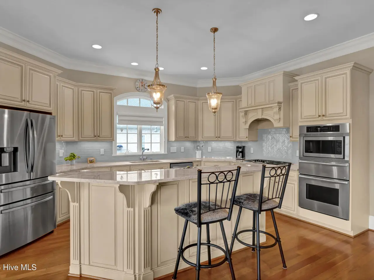 Awaken each day to breathtaking water views, sensational sunrises & elegant coastal living in this exceptional custom residence within the gated community of Landfall. Perfectly situated on a rare .8-acre homesite, this 5,398 sq ft home captures stunning water views of lovely Landfall Lake & its walking trail. Inside, wood floors, abundant natural light, and timeless architectural details create a warm yet sophisticated ambiance in both formal & informal living & dining areas. Every detail has been thoughtfully designed for comfort and connection. The beautifully updated gourmet kitchen impresses with a gas cooktop, large pantry, tiled backsplash, generous island, stunning quartzite counters...and the walk-in wine cellar is ideal for everyday living or entertaining in style. The first-floor Primary Retreat is a sanctuary with a zero-entry shower, soaking tub, and 3 closets. Upstairs, you'll find 3 additional bedrooms plus a versatile office/study, gathering room/den, and a large FROG/bonus room/guest or in-law suite with new carpetplenty of room for your family and visitors. Outdoor living is exceptional, featuring upper & lower porches overlooking the fenced yard & tranquil lake. With its 3-car garage, natural gas systems, tankless water heater, slate roof, termite bond & home warranty, this move-in-ready residence is a rare opportunity to live beautifully in one of Wilmington's most coveted communities.