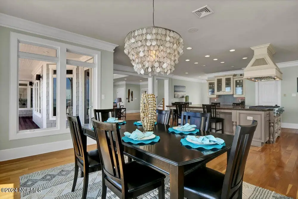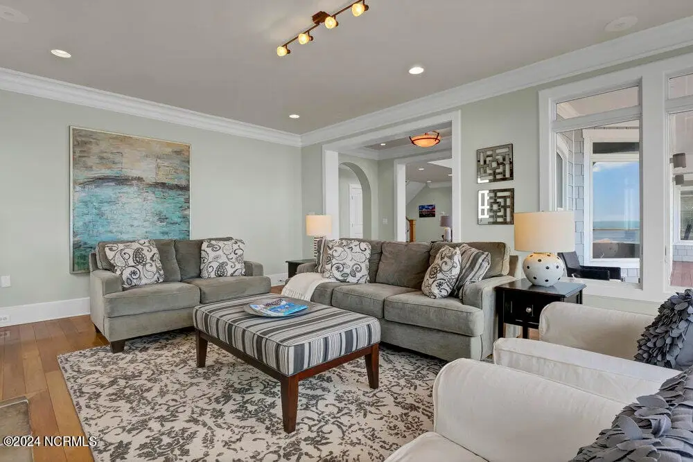 Located on the south end of Figure Eight Island, this stunning 5-bedroom, 4.5-bathroom home offers breathtaking views from every room. With its expansive windows, tall ceilings and spacious layout, you'll enjoy panoramic views of the ocean throughout. The gourmet kitchen features custom-built cabinetry, Viking appliances, and sleek granite countertops, perfect for preparing meals while soaking in the views. The luxurious primary suite offers its own private balcony, sitting area, and uninterrupted ocean views. With four garages, an elevator for easy access to all levels, and being offered fully furnished, this home is the epitome of coastal living. Experience the beauty of island life in a home that blends comfort, luxury, and unparalleled oceanfront views. Additionally, All hardwood floors recently refinished and a yacht club warrant is available, adding to the amenities of this exceptional property.