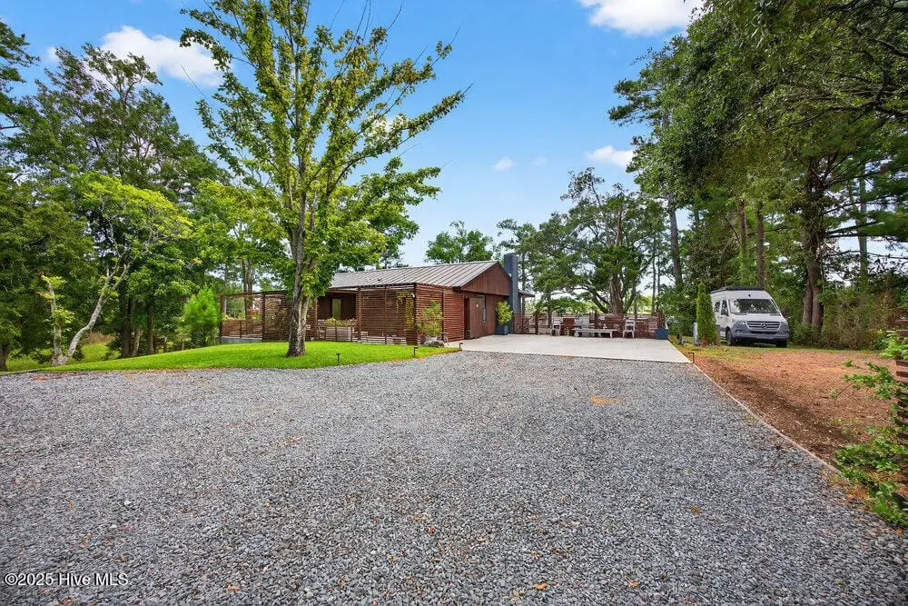 This rare two-acre estate is one of Wilmington's most unique offerings. Located on Hewletts Creek with a high elevation, south-facing peninsula which commands over 700 feet of water frontage. This coastal woodland property is filled with natural beauty: mature trees, abundant wildlife and front row access to fishing and boating. The meticulously restored 1955 mid-century ranch house utilizes organic materials throughout, clad in cypress, blending perfectly into the landscape. Perched well above the flood zone, joining the indoors and out seamlessly, the residence was designed for those who appreciate a true connection to nature. The recently built freeform pool emerges from the rolling terrain, capturing mid-century design at its finest. The site’s perfect solar orientation presents magnificent light throughout the day, awe-inspiring star-gazing in the evenings, creating a nature preserve-like setting with unmatched privacy. A property like this becomes available once in a generation, a true Wilmington icon.