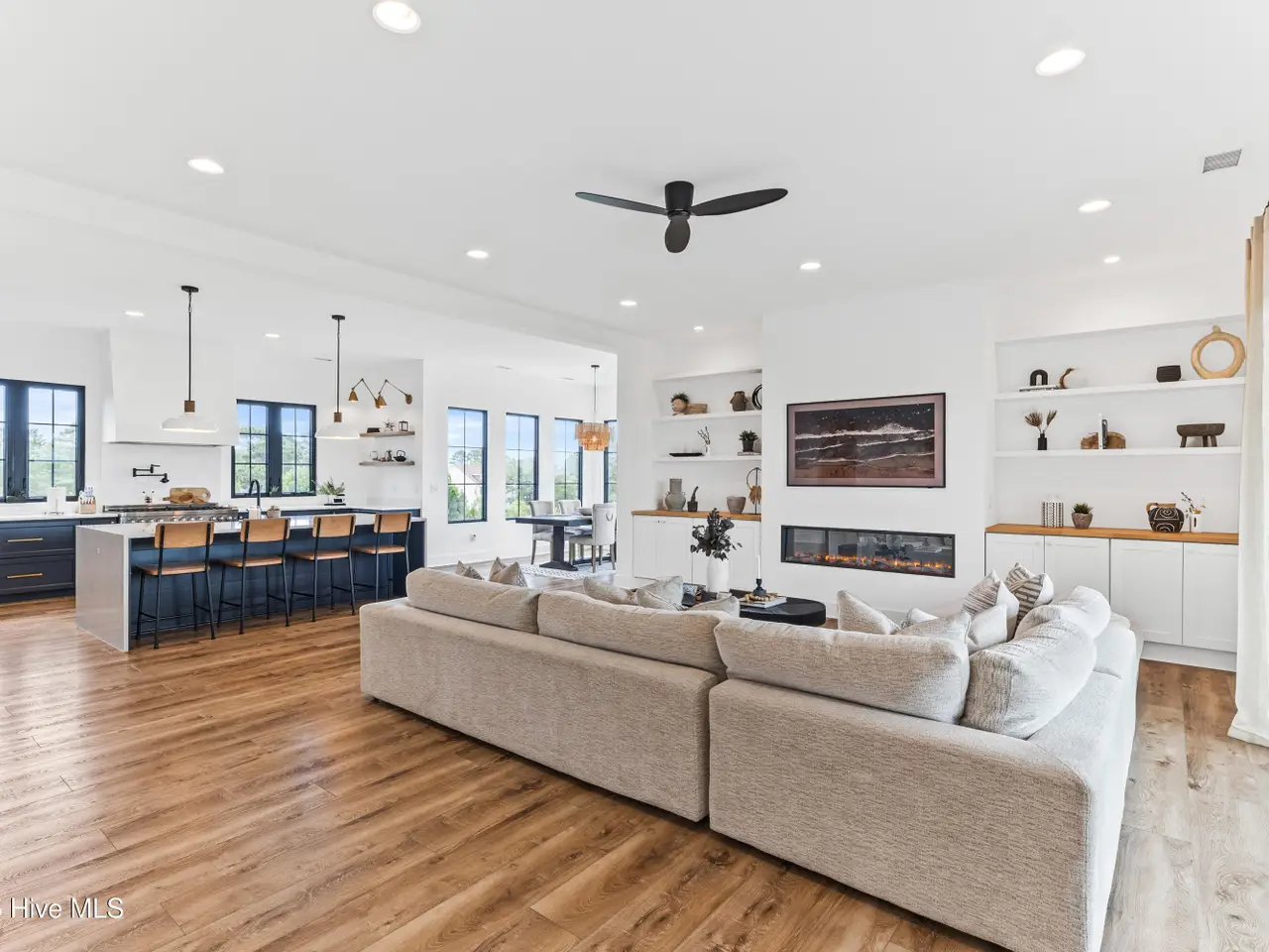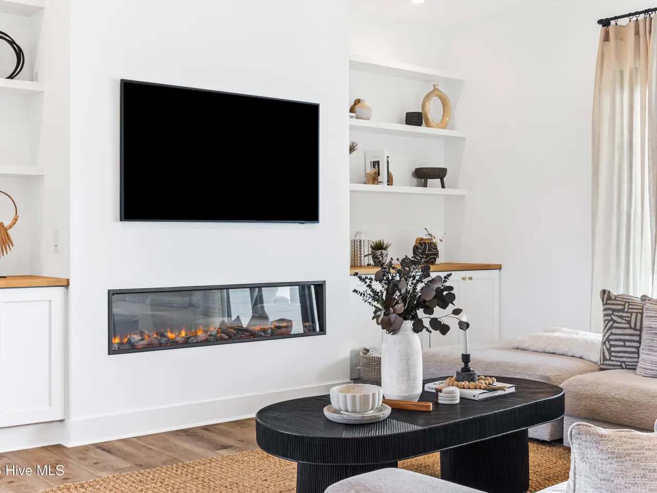 DP-Rated glass walls with linear fireplace