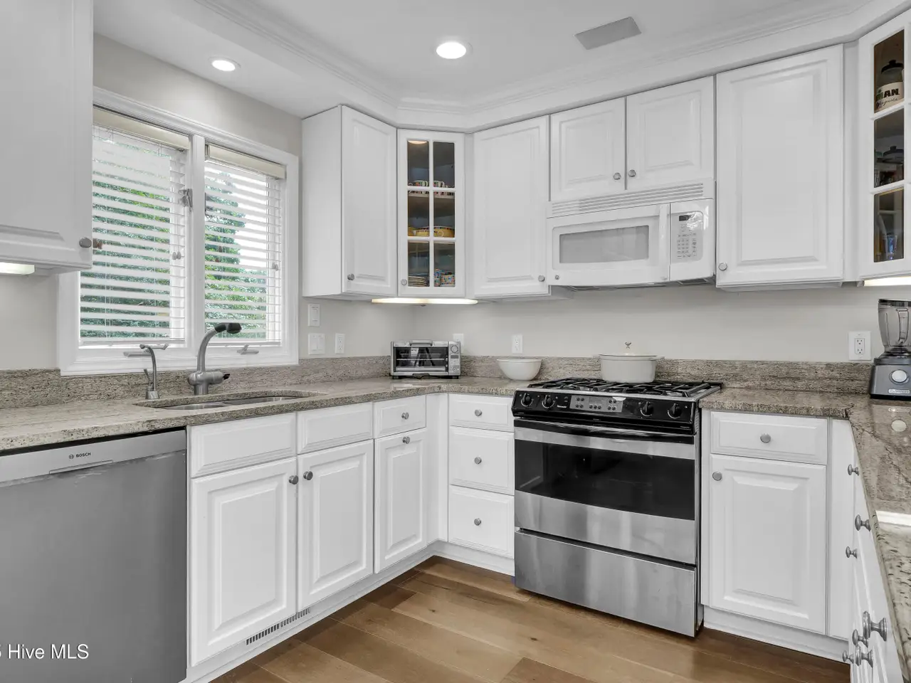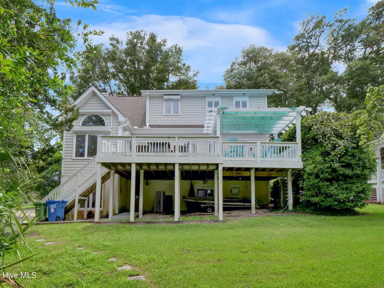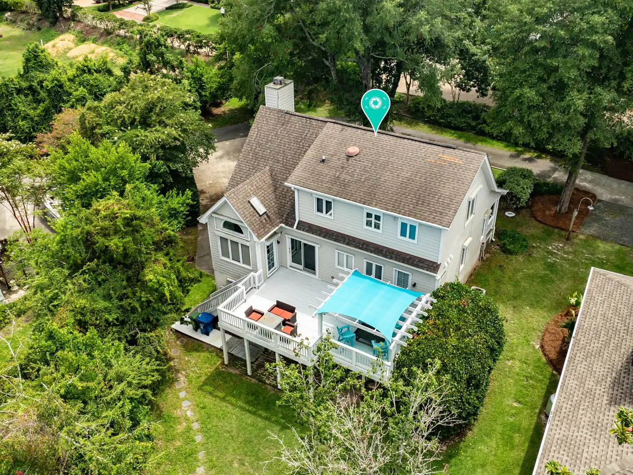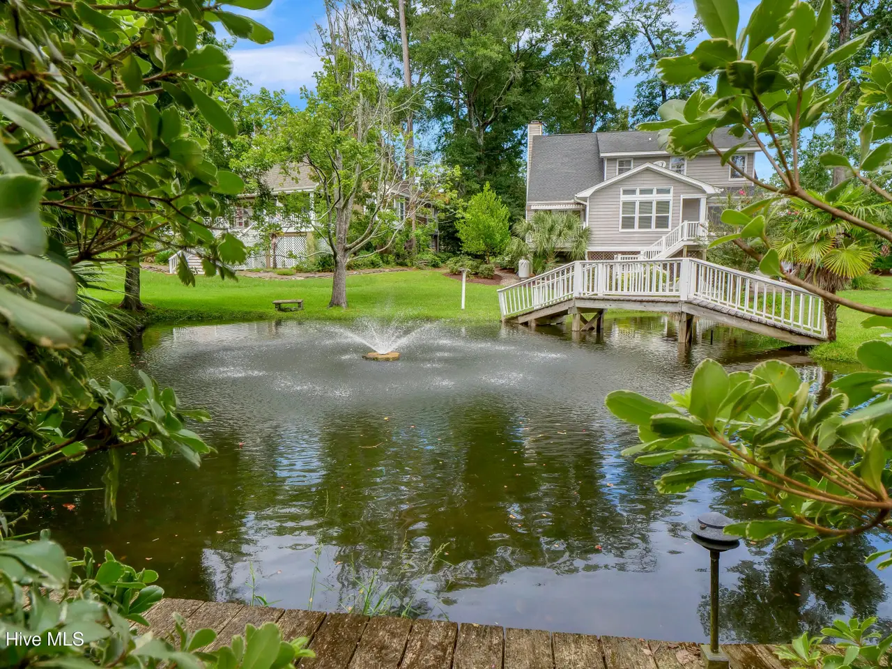 The drawbridge to Wrightsville Beach is the epicenter of the bubble and the best life in the Wilmington area. While this house is only 2371 square feet, it packs a punch with its rocking chair front porch, open floor plan, three bedrooms, 4 1/2 baths plus additional suite with kitchenette on the ground floor and two car garage. The elevated back deck overlooks, a beautifully landscaped pond and the Airlie Place neighborhood pool and clubhouse that is shared with the adjacent 9 neighbors. Nicely updated with quartz counters and updated baths, hardwood flooring, and great natural light. At the foot of the street is North Carolina scenic byway Airlie Road with three waterfront restaurants, including Dockside, Fish House and Bridge Tender. An easy walk or bike to the beach and start the day off with a stroll around the loop.