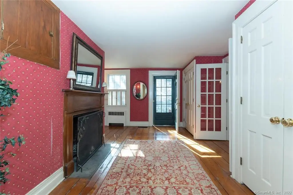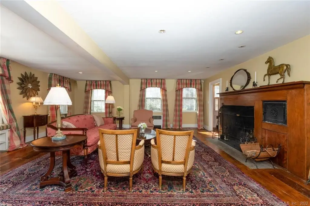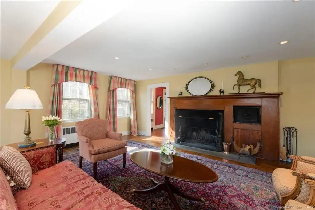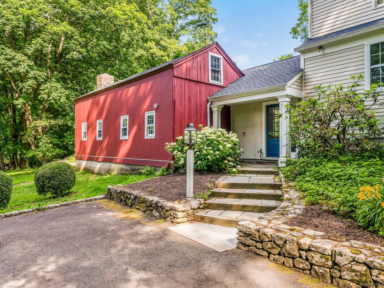 Step Back in Time with the ultimate charm of yesteryear blended with the modern comforts of today - The Samuel Middlebrook House, circa 1830. This beautifully preserved 5-bedroom antique residence offers timeless character and plenty of charm. Rich in period detail, the home features wide plank wood floors, exposed beams, original fireplaces with hand-carved mantels, and a charming bee-hive oven-classic hallmarks of 19th-century craftsmanship. A welcoming front foyer with fireplace sets the tone, while French doors from the cozy den open to a private flagstone terrace-ideal for relaxing or entertaining. The spacious kitchen is complemented by a sunny seating area plus large laundry/mudroom, adding everyday functionality. A true highlight is the attached authentic barn-style family room with fireplace, offering rustic warmth and extra room to gather. Upstairs there's a spacious primary en-suite bedroom plus four more bedrooms. The partially finished walk-up attic provides more bonus space for work, play, or storage. Set on a picturesque 2-acre lot framed by stone walls, a white picket gate, and possible pool sites; the home offers over 4,300 square feet of living space-an impressive scale for an antique. With a coveted location near town schools and train, this unique property blends historic charm with everyday convenience. Not your typical home-this one-of-a-kind treasure is waiting to welcome its next chapter. See attached information from the Wilton Historical Society.