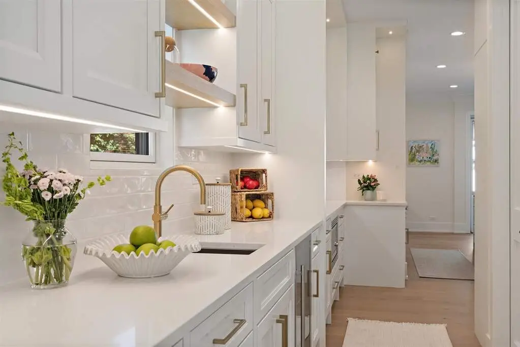Just completed October 28th, this breezy, bright, and beautifully coastal new construction by one of the North Shore's premier builders captures the essence of modern beachy living. From the moment you arrive the sea salt blue shutters set the tone for what's inside: a sun-kissed sanctuary where craftsmanship meets coastal charm. Soaring ceilings, hand-beveled wide-plank white oak floors, Marvin windows, Ann Sacks tile, and layers of quartz and fine white marbles, all woven together with exquisite millwork and a refined, airy palette. Foyer opens to a coastal-inspired office wrapped in soft pale blue cabinetry and custom glass French doors. Formal dining room connects seamlessly to a fully outfitted butler's pantry, leading into the show-stopping Chef's kitchen-straight out of a Serena & Lily magazine. Thick white & light-veined quartz countertops, Visual Comfort pendants, custom cabinetry with polished brass accents, Thermador appliances and a soft blue island anchoring the room with seating for 5. Open-concept kitchen to family room centered around a black surround gas fireplace flanked by custom built-ins, bathe in sunlight through expansive floor-to-ceiling glass doors that open to the back patio and lush backyard. Mudroom with built in bench, gray and white checkered floors and sky-blue cabinetry and a designer level powder room complete this level. Second level with 4 ensuite bedrooms, each with its own beautifully tailored bath and fully built-out closets. Luxury primary suite a five-star retreat, featuring vaulted ceilings, large walk-in closet and a luxe white spa bath with dual vanities, walk-in shower, and soaking tub. Second level laundry room with double washer and dryer. Sun-drenched third floor offers endless versatility with bedroom, full bath, playroom, and office space. Fully loaded lower-level w/ a glass-enclosed gym with rubber flooring & mirrored walls, sleek wine cellar with custom racking and glass door, bedroom, full bath, and a large recreation room with custom media center and wet bar. This beachy new construction home delivers the ultimate living experience-a one-of-a-kind opportunity set in a prime Winnetka steps to it all!