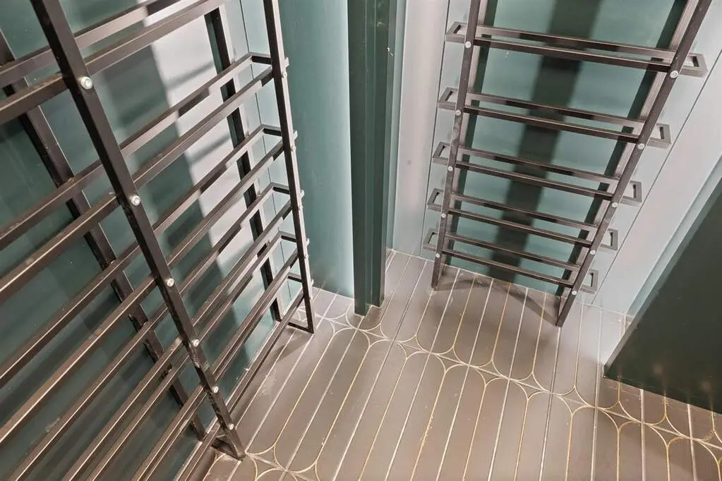 • Sleek wine cellar with custom racking
