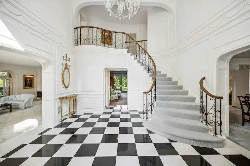 Nestled down a winding, private road on 1.9 meticulous park-like acres, this grand, almost 10,000 square foot residence exudes luxury and timeless elegance. The front entrance is set apart from the road by a sweeping circular drive bordered by private hedges and mature trees. Upon entering the stately, two-story foyer with a 25' ceiling, bridal staircase, black and white marble floor, formal powder room and two coat closets, you are greeted by the sophistication that defines this home. The main level features a spacious, step-down living room with inlaid floors, a marble, gas and wood fireplace, and two picture windows that fill the room with natural light. Pass through the living room to an adjoining, architecturally beautiful solarium with a slate floor, that offers panoramic views of the lush grounds surrounding the residence. The formal dining room also features inlaid floors, and picture window. The handsome family room with custom cabinetry, lighting, millwork, and a marble, gas and wood fireplace, provides the perfect space for entertaining and relaxation while overlooking a yard large enough for a pool. The family room seamlessly flows into a large kitchen area that includes not only a custom kitchen but also a breakfast room, butler's pantry, back staircase, and mud room. The butler's pantry has an ice maker, second dishwasher, and beverage refrigerator. Upstairs, the luxurious primary bedroom suite boasts a marble, gas and wood fireplace, walk-in closet, and an adjoining sun room with stunning views of the grounds. It is perfect for family gatherings, office space or nursery. Adjacent to the dual sink primary bath with a vanity table, there is a winding staircase that leads upstairs to the third floor where you will find a beautifully crafted wardrobe/dressing room with many custom built-ins, lighting and mirrors. This lovely area conveniently leads to an exercise room, powder room and an oversized cedar closet, and this completes the third floor. There are four additional family bedrooms on the second floor, two share a Jack and Jill bathroom, one has its own en-suite, and the fifth bedroom suite offers versatile living space. The fifth bedroom and sitting room, located near the back stairs, welcomes an in-law arrangement, live-in nanny, or out-of-town guests. The full basement offers at least another 2,444 square feet of living space and includes a large recreation room with fireplace, billiard room, wet bar, spacious laundry room, large cedar closet, another storage room with built-in shelving, and a powder room. The yard is professionally landscaped, private, and nearly two acres is quite hard to come by in Winnetka. Additional features of this remarkable residence include: a three car, heated, attached garage, magnificent craftsmanship, glorious room sizes, four fireplaces, a slate roof, copper gutters, circular driveway and uncommon privacy. This residence is a true gem in the heart of Winnetka. Live a life of luxury and sophistication in this exceptional home. Woodley Road, with its canopy of mature trees, is a coveted private oasis, and yet is conveniently located near town, train, restaurants, schools and a public golf course. This property is not located in the flood plane.
