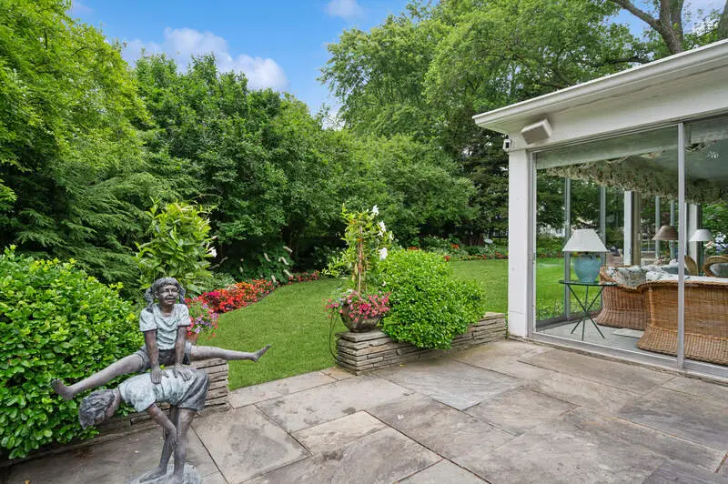 This incredible & expansive 4 bedroom, 3.2 bathroom home is situated on .654 acres of spectacular property in an idyllic & private location. Surrounded by mature trees and beautiful foliage, the fantastic gardens & outdoor area boast three bluestone patios. The home brings the outdoors inside with oversized windows throughout the home. When you walk into the home, you are welcomed in the large foyer and move into the 24 x 21 living room with marble surround fireplace that is sun-filled and bright. This leads you to the 22 x 14 enclosed porch area where you can bask in the sun with walls of windows & surrounded by private, beautiful and mature landscaping. This home truly brings the outdoors inside to you! The dining room is perfect for hosting events and leads to the 26 x 18 white eat-in kitchen with an island and double ovens that is very spacious for cooking and entertaining. The kitchen is conveniently located next to the first-floor laundry room. Down the hall from the kitchen is a huge wood beamed ceiling family room with patio doors that open to the outside, a fireplace with granite surround and built-in bookshelves where the media resides. The octagonal office with an oversized vaulted ceiling and is flanked with floor to ceiling windows and beautiful built-in bookshelves. Working from home has never been more relaxing in this serene setting. Take the steps off the family room up to the recreation room where you can play pool, games or watch tv in this amazing playroom area. The functionality of having a large first floor primary suite, with attached bathroom, closets galore, near your own outdoor oasis is spectacular. You are in your own bed and breakfast when sleeping in the first-floor primary suite retreat surrounded by gardens and a bluestone walkway. The second floor has three additional bedrooms and two full bathrooms. With an attached 3 car garage, circular driveway on the property and parking for guests in front of the home, you are ready to host any event at this incredible home. The lower level has storage galore and a wine cellar. This is a very special home that has been well loved for many years on the most incredible and expansive property.