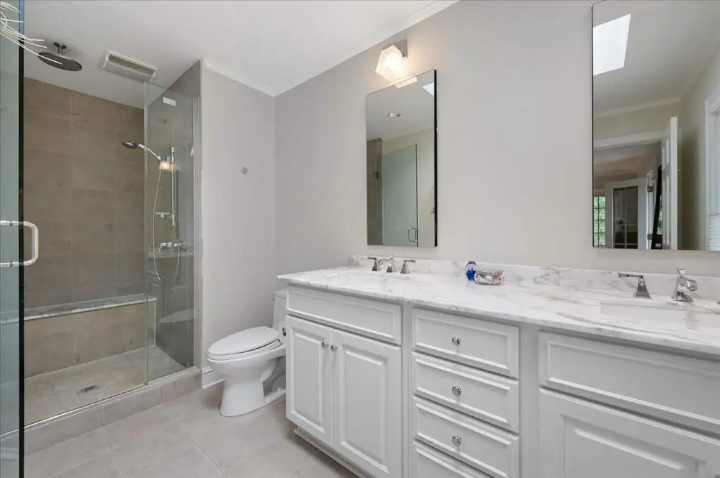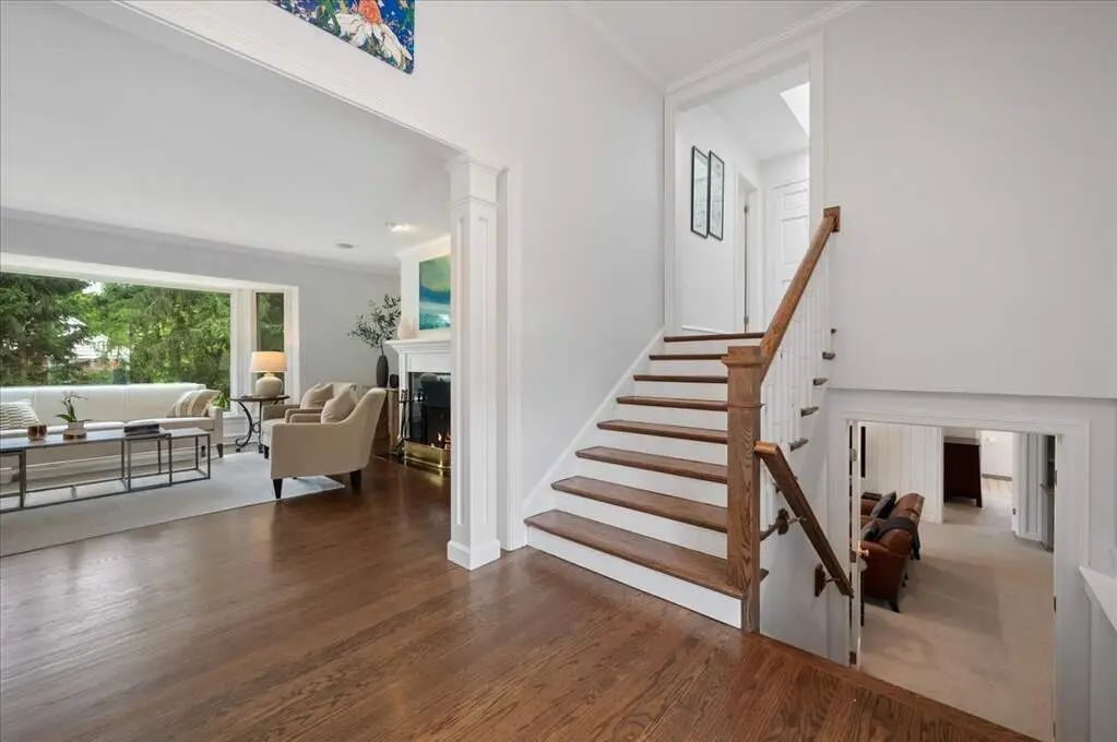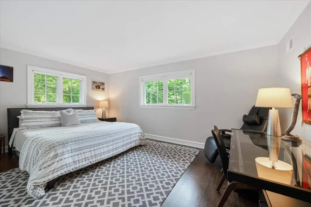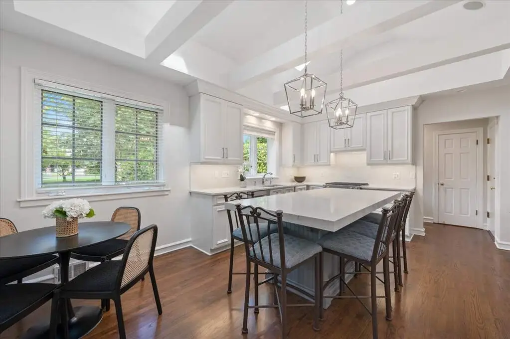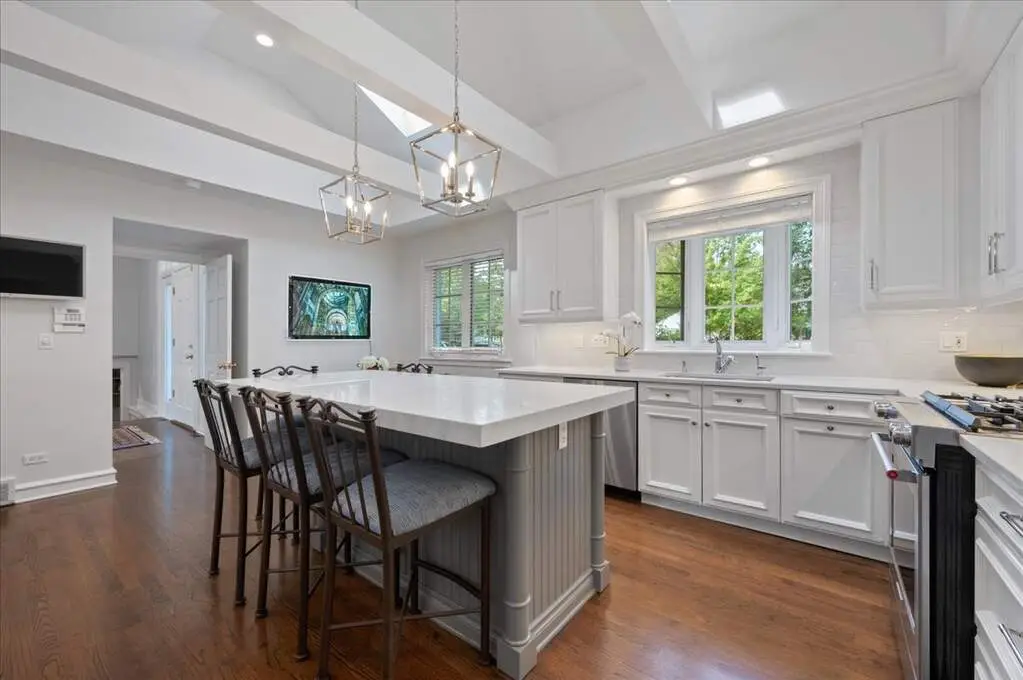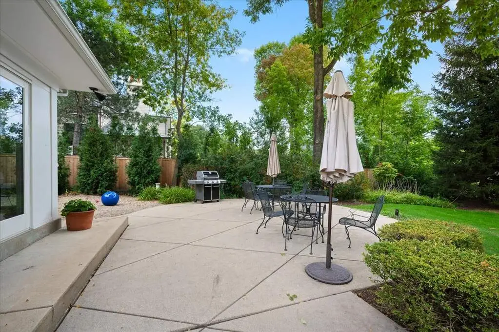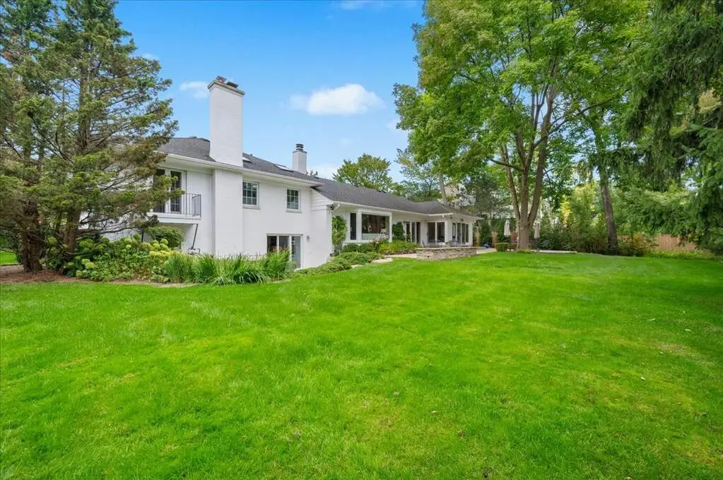This timeless 4 bedroom 3.1 bathroom white brick split-level home sits on a beautifully landscaped 1/2-acre lot on a quiet, private street. A true Winnetka gem- this Hemphill home has 3,800 SF! The property offers the rare convenience of both an attached garage and a circle driveway, with a welcoming bluestone walkway leading to the front door. Inside, a bright foyer opens to sun-filled living spaces with southern exposure and sweeping views of the backyard. The living room, anchored by a gas fireplace and bay window, flows seamlessly into the dining room and family room, where sliders open to the patio for easy indoor-outdoor living. The updated kitchen is a standout, with vaulted ceilings, beams, skylights, white quartz countertops, new appliances, modern lighting, and fresh hardware, and connects to a mudroom with first-floor laundry. The split-level layout checks every box: just eight steps up to three spacious bedrooms and two updated full baths, including a primary suite with a private balcony overlooking the backyard. Eight steps down leads to a bright ground level with a large recreation room, walk-out patio, a fourth bedroom, renovated full bath, and utility room. Thoughtful updates include newer windows, dual 2023 HVAC systems, and a 2025 water heater. Additional features include a pull-down attic for abundant storage and an attached garage with a dedicated storage shed. Outdoor living shines with multiple patios, mature trees, and expansive green space-a true half-acre retreat in the village. A sprinkler system keeps the grounds lush and green. The 136-foot-wide lot provides privacy and space rarely found at this price point, where most Winnetka lots are only 50 feet wide. All of this in an unbeatable walk-to-everything location-just steps from neighborhood schools (K-8), as well as Skokie Playfield's tennis courts, baseball fields, hockey rink, and park amenities. Plus taxes are under $18k.