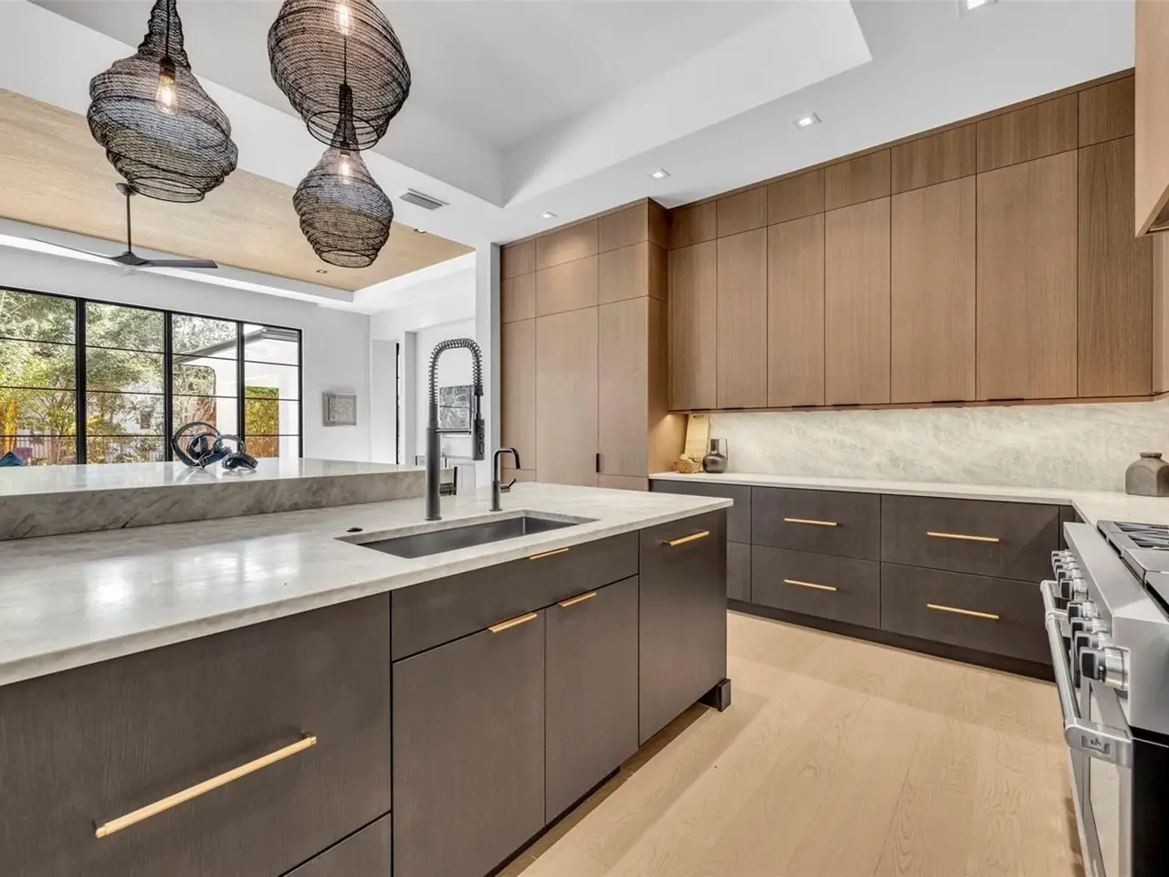 Exquisite new construction in the Heart of Winter Park perfectly positioned on an oversized lot just steps from Park Avenue’s renowned shops, fine dining, and the iconic Winter Park 9-hole golf course, this extraordinary custom residence is a showcase of timeless design and modern luxury. Conceived by acclaimed architect Dan Delong of Origins Residential Design and brought to life by Sean Wulff of Native Homes, every detail has been thoughtfully curated to impress even the most discerning buyer. The expansive floor plan encompasses 5 bedrooms, 6 full baths, and 1 half bath, blending sophistication and comfort across multiple living spaces. Highlights include a dramatic great room, inviting family room, private study, downstairs guest suite, a full bar featuring a 56-bottle wine refrigerator, and an upstairs game room—ideal for both everyday living and elegant entertaining. A grand entry reveals the great room with soaring floor-to-ceiling windows and elegant Italian porcelain tile, all overlooking the serene pool and patio. The chef’s kitchen seamlessly connects to the family room and features Canadian-crafted European-style cabinetry, Wolf, Sub-Zero & Fisher & Paykel appliances (dual ovens, dual dishwashers, built-in coffee maker, wine cooler, and beverage center), quartzite countertops, a large island with bar seating, hidden walk-in pantry, plus whole house water softener and filtration systems for premium convenience. The first-floor primary suite is a true retreat with spa-inspired amenities and a custom-built walk-in closet complete with cabinetry and a spacious island. Also on the main level: a private guest suite and dedicated home office/study. Upstairs, a generous game room and three additional en suite bedrooms provide comfort and privacy for family and guests alike. Designed for seamless indoor-outdoor living, the residence boasts two covered lanais finished in Turkish Marble, disappearing screens, a summer kitchen with Urban Bonfire Cabinetry, refrigerator, and ice maker, along with a freestanding fire pit and lush tropical landscaping. The saltwater pool with sun shelf and heated gas spa ensures year-round enjoyment. Built to the highest standards, the home features R-14 block walls with core 500 insulation, open cell foam insulation in attic, Andersen windows, a flat concrete tile roof, and tongue-and-groove ceilings on all lanais. Additional luxuries include: – Select European white oak wood floors and Italian porcelain flooring throughout – 12’ ceilings on the main level, 10’ ceilings upstairs – Cutting-edge construction for efficiency and durability