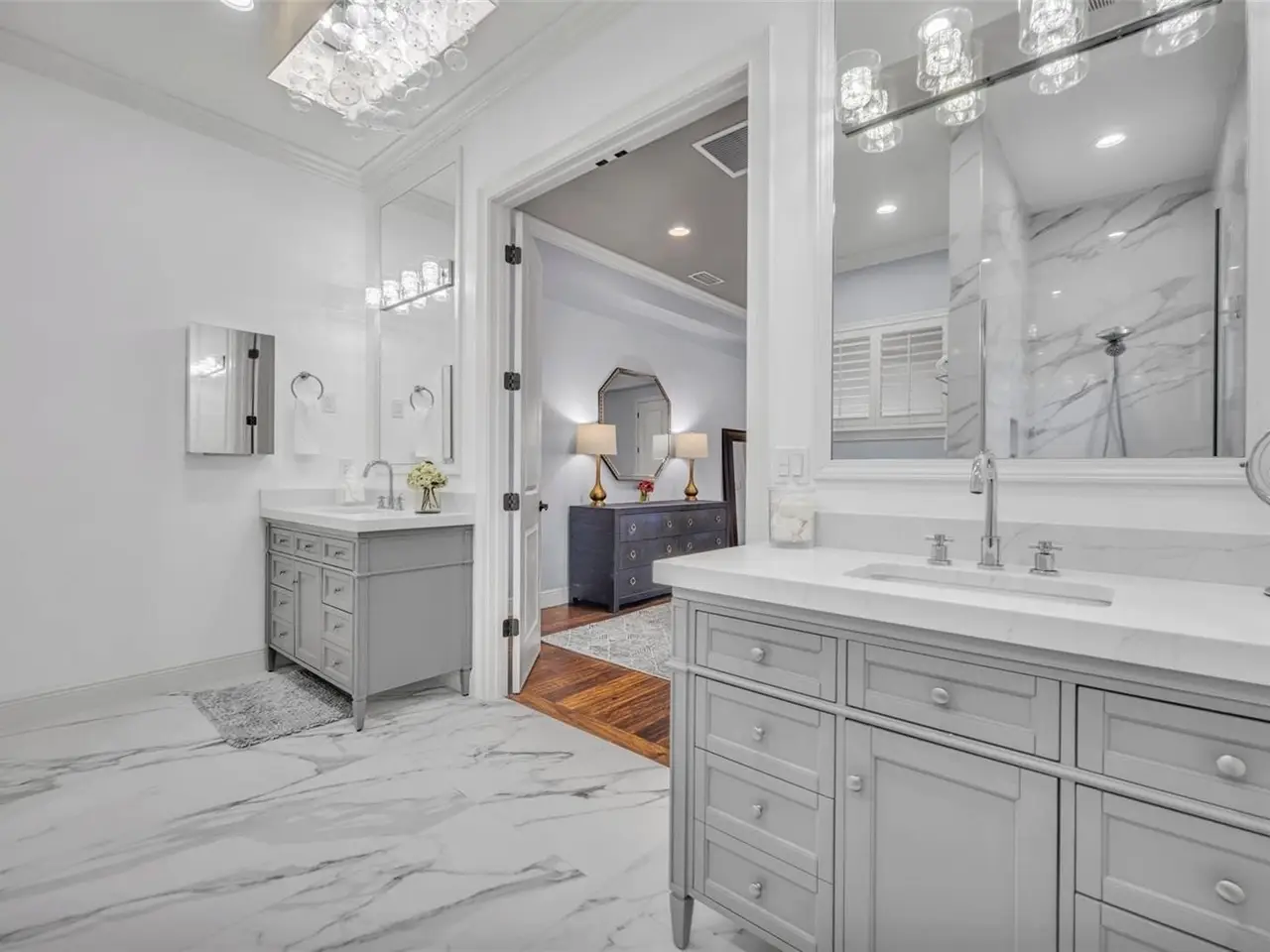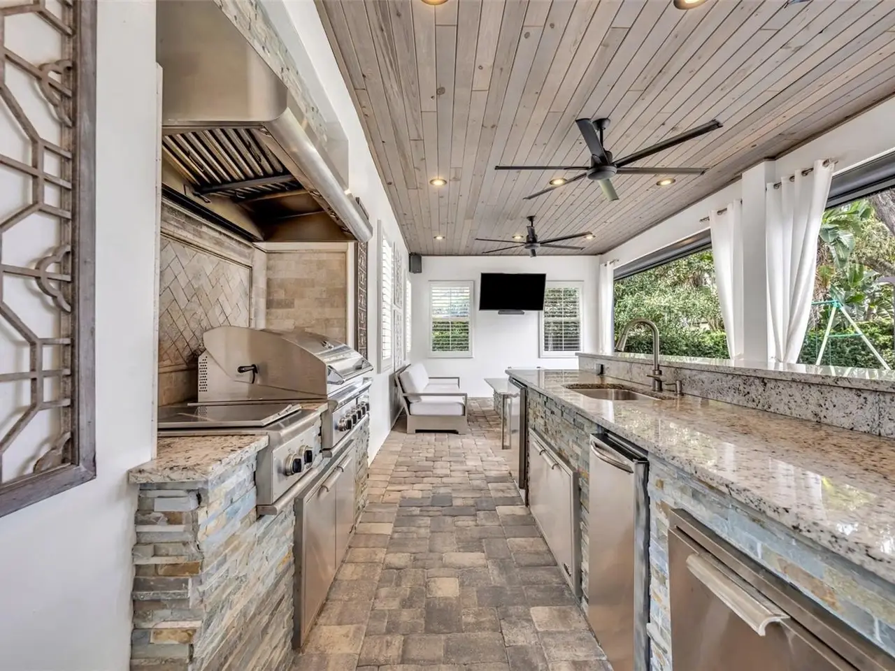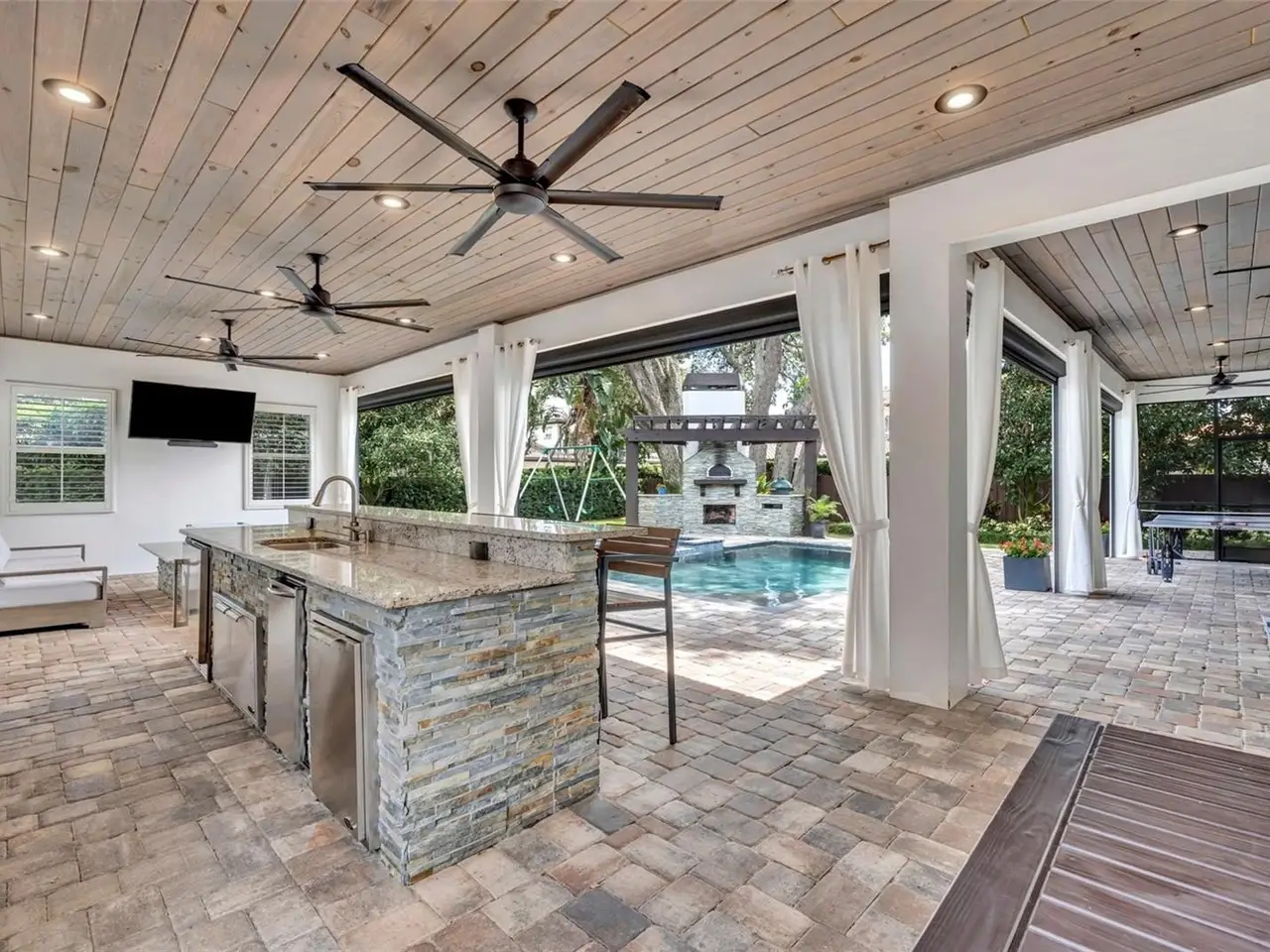 This stunning LunDev-built pool home has been meticulously maintained and thoughtfully updated, blending timeless craftsmanship with modern style. The ideal floorplan features a first-floor primary suite, a private office, and an open kitchen and family room that flow effortlessly to the home’s exceptional outdoor living space. Outside, the spacious backyard is a private retreat complete with an oversized covered patio, gas firepit, and a fully equipped summer kitchen with a pizza oven, all surrounding a sparkling pool and heated spa. In 2022, the kitchen received a major renovation, showcasing a new island, updated countertops and backsplash, fresh fixtures and cabinet hardware, and elegant lighting that elevate the space. The primary bath renovation mirrors the same level of quality, with new custom vanities topped with quartz countertops, all-new tile, a glass-enclosed shower, a relaxing soaking tub, and classic lighting and mirrors. Additional improvements include a new roof (2021), newer hardwood floors throughout the 2nd floor, updated brick paver driveway, newer pool equipment, and fresh interior and exterior paint, each reflecting consistent care and attention to detail. Designed for both everyday comfort and effortless entertaining, this home is truly move-in ready and radiates pride of ownership inside and out.