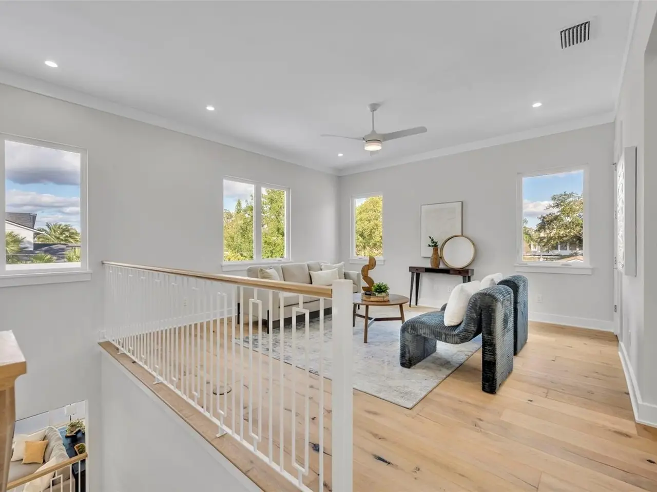 Wide-plank white oak floors