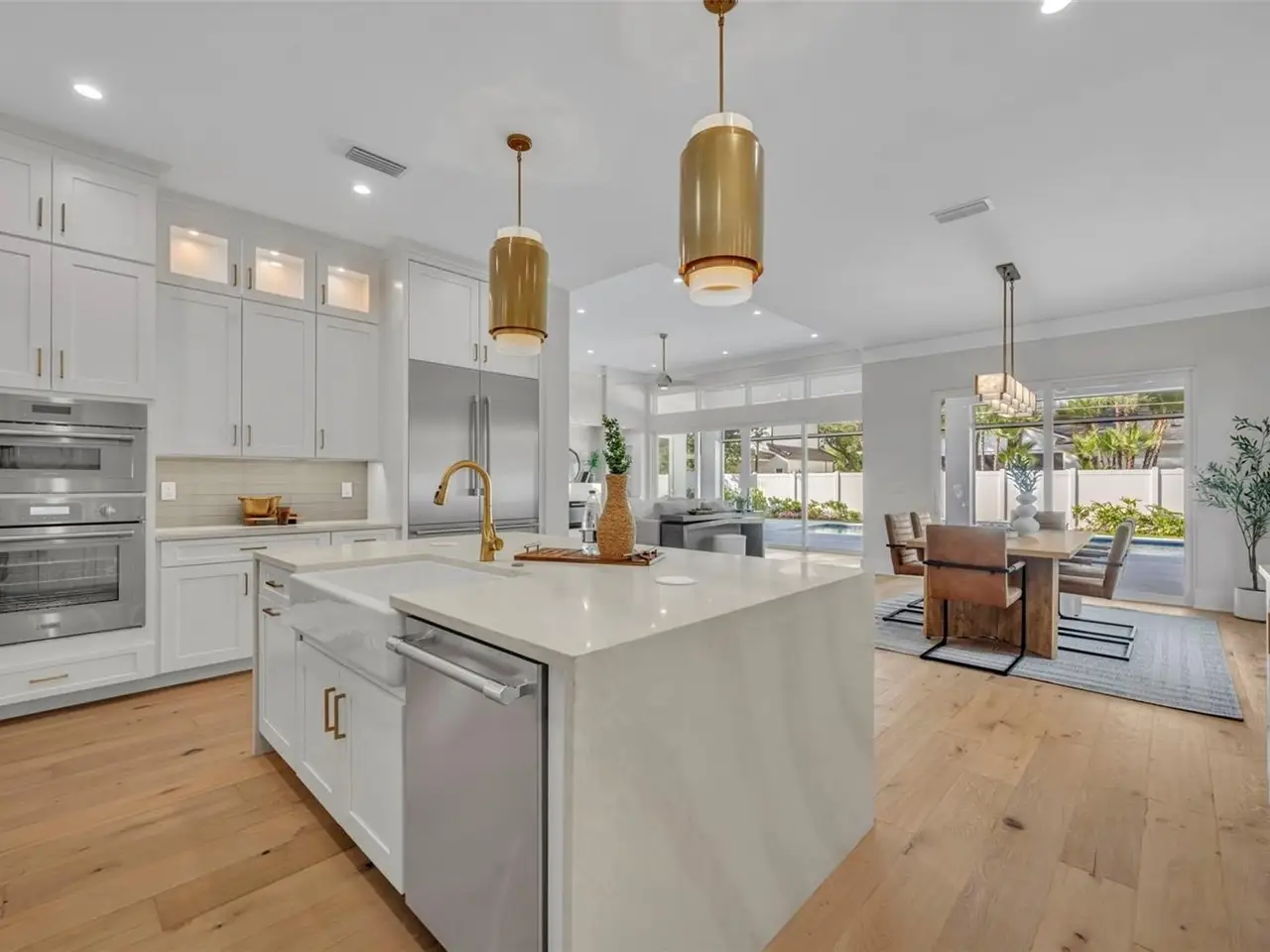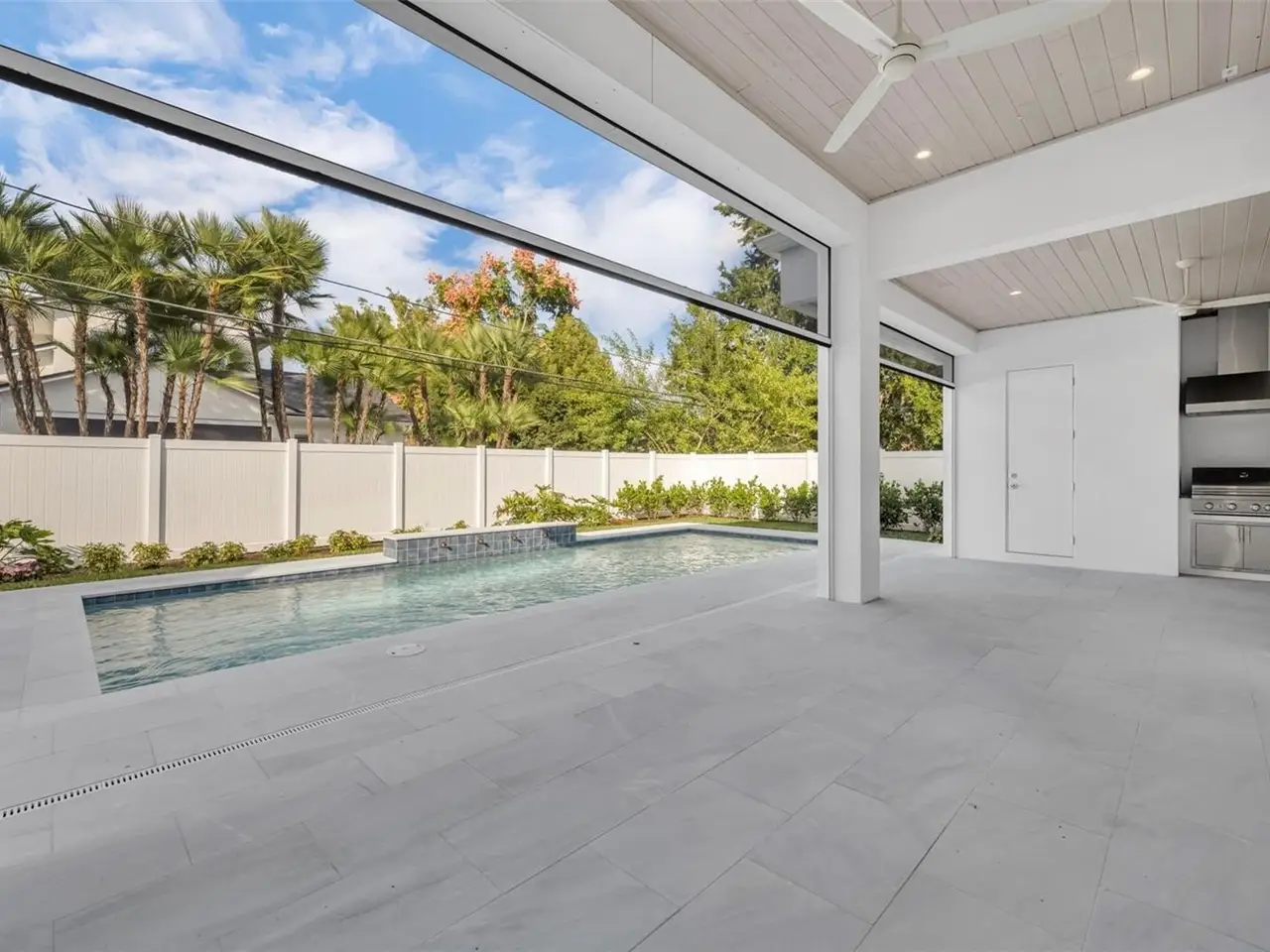 Introducing a stunning new custom home by Ellsworth Gallimore and Butler Ridge Development, ideally situated in a prime Winter Park neighborhood. This residence combines timeless elegance with modern luxury, showcasing exceptional design and craftsmanship throughout. The thoughtfully designed home features a marble front façade and professional landscaping. Inside, you’ll find an open, bright layout with high ceilings, wide-plank white oak floors, oversized picture windows, and refined crown molding. A welcoming flex space—perfect as a sitting room or den—greets you at the entry, across from another room ideal for a private office. The great room, at the center of the home, offers 12-foot ceilings, a sleek fireplace, and a full wall of sliding glass doors that open to the resort-style backyard. Designed for both entertaining and daily living, the open-concept kitchen, dining, and living areas flow seamlessly together. The chef’s kitchen impresses with a striking waterfall island, premium Thermador appliances, a dual-fuel range with a 6-burner gas cooktop, a third oven plus convection microwave, and an expansive custom pantry. A stylish mudroom and decorative laundry room complete the main level’s amenities. The primary suite on the first floor features direct access to the pool, a spa-inspired bath with a soaking tub, multi-spray shower, dual sinks with a large vanity, and a spacious custom walk-in closet. Upstairs, a loft-style bonus room connects to three additional bedroom suites, each with custom closets and ample storage. Outdoor living includes a saltwater pool with an elegant fountain feature, marble pavers, a summer kitchen with a built-in grill, sink, and beverage fridge, an outdoor bathroom, and a lush grassy area perfect for play or pets. Additional highlights include a two-car garage and zoning for top-rated schools—Lakemont Elementary, Maitland Middle, and Winter Park High. Walk to the Winter Park YMCA and Phelps Park, and enjoy being just minutes from vibrant downtown Winter Park. Elegant design, modern luxury, and a prime location—this exceptional new home offers the very best of Winter Park living.