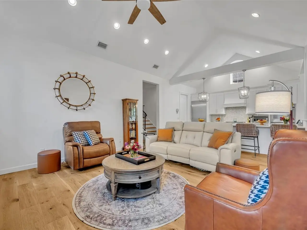 Cathedral ceiling with natural gas fireplace