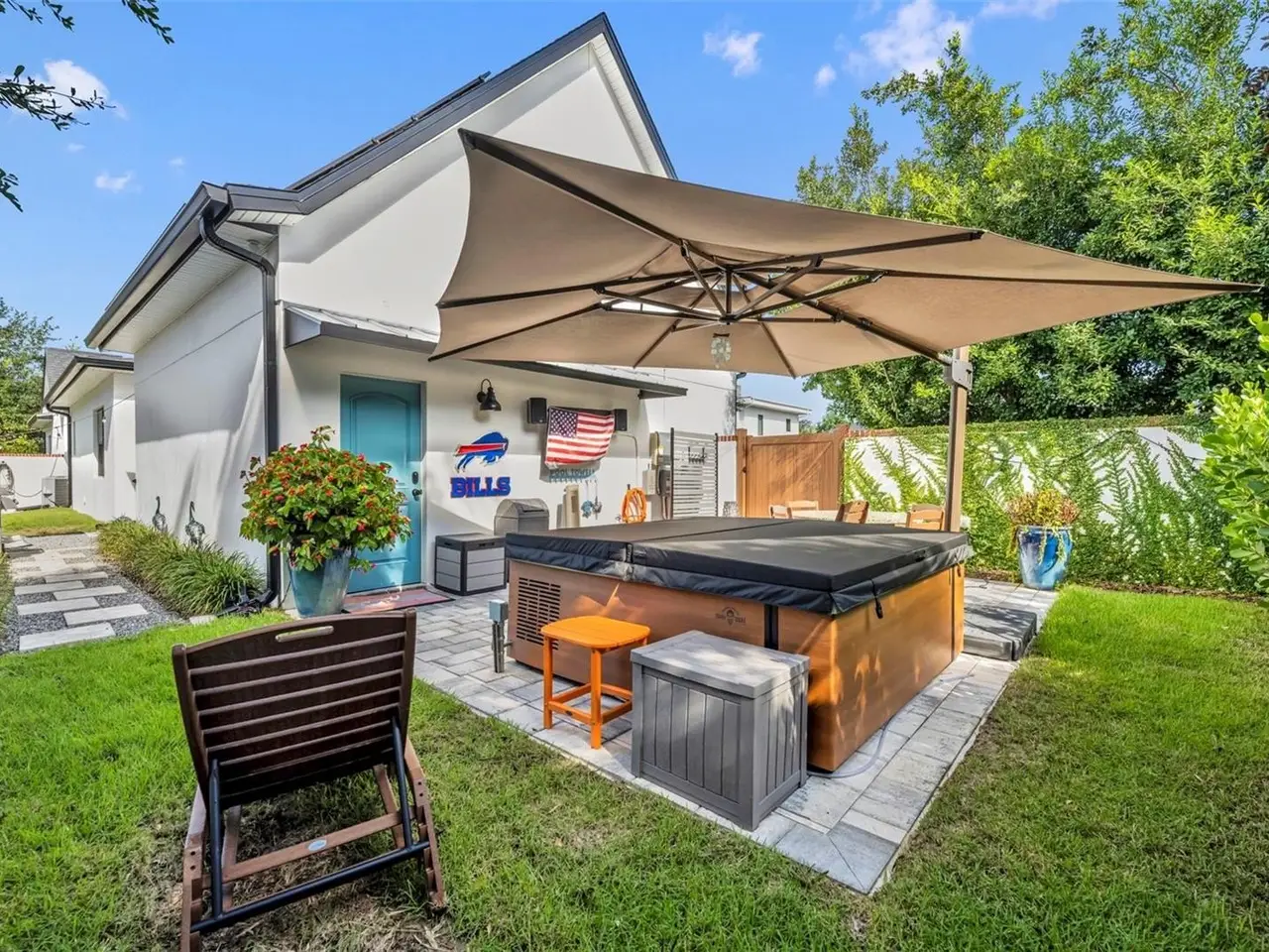 Private backyard oasis with hot/cold tub