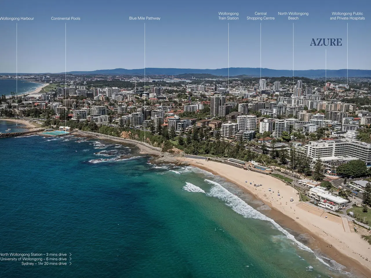 Ideally located for convenient access to Wollongong's acclaimed picture-postcard oceanfront and expansive greenspaces, Belle Property presents Azure - a striking new development offering 9 whole-floor, north facing apartments, each embracing dramatic views of the region's unique coastline and majestic escarpment. Featuring organic curved forms echoing the coves and headlands of the shoreline they inhabit, each apartment has been thoughtfully curated using premium natural materials and state-of-the-art inclusions to deliver a selection of luxurious residences, all basking in a glorious sunny northerly aspect. Wollongong is a dynamic city with a richly diverse fabric, large enough to offer necessary specialised services, yet small enough to remain a closely connected community. With a stunning natural landscape, distinguished University, flourishing growth rate, and Sydney CBD just 80 mins away, the future looks bright indeed. For further details please visit www.azureresidences.com.au - 9 luxuriously appointed whole-floor apartments a gentle stroll to the beach - Construction is now underway, with completion anticipated by mid-2027 - Wide covered balconies embrace sweeping views of the stunning coastline - Sleek stone kitchens include butler's pantry and Miele appliances - Generous carpeted bedrooms with robes enjoy direct access to balcony - Oversized master bedrooms feature walk-in robes and elegant ensuites - Chic bathrooms include freestanding baths and frameless rain showers - Secure double and triple lock up garages. Storage options available - Penthouse featuring fireplace and exclusive use of rooftop terrace - 200m to local eateries, 300m to superb North Beach, 400m to Stuart Park