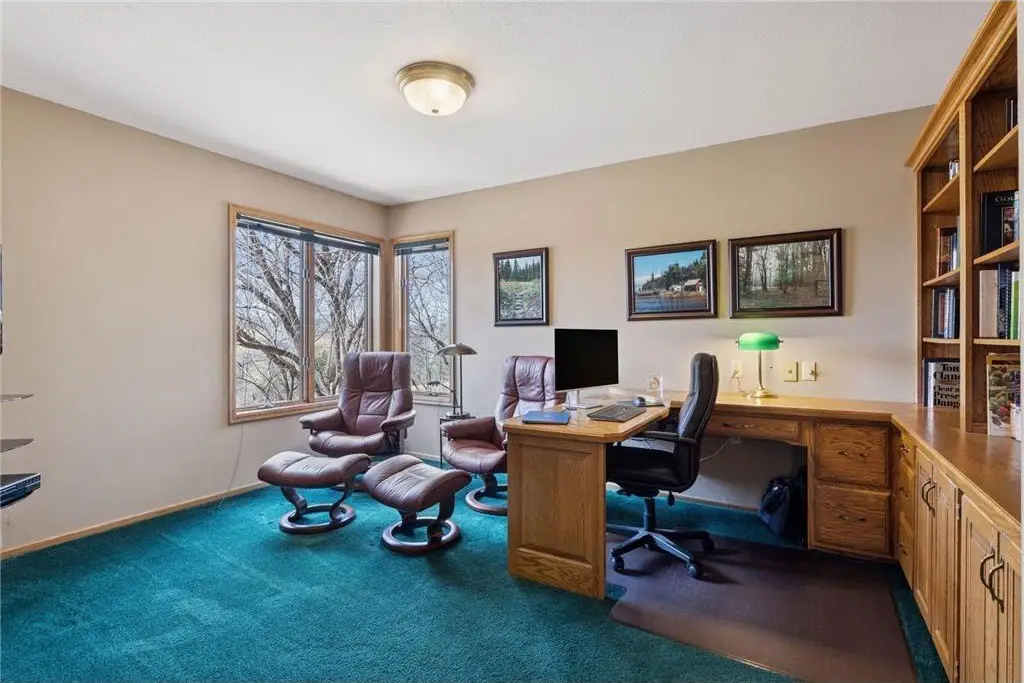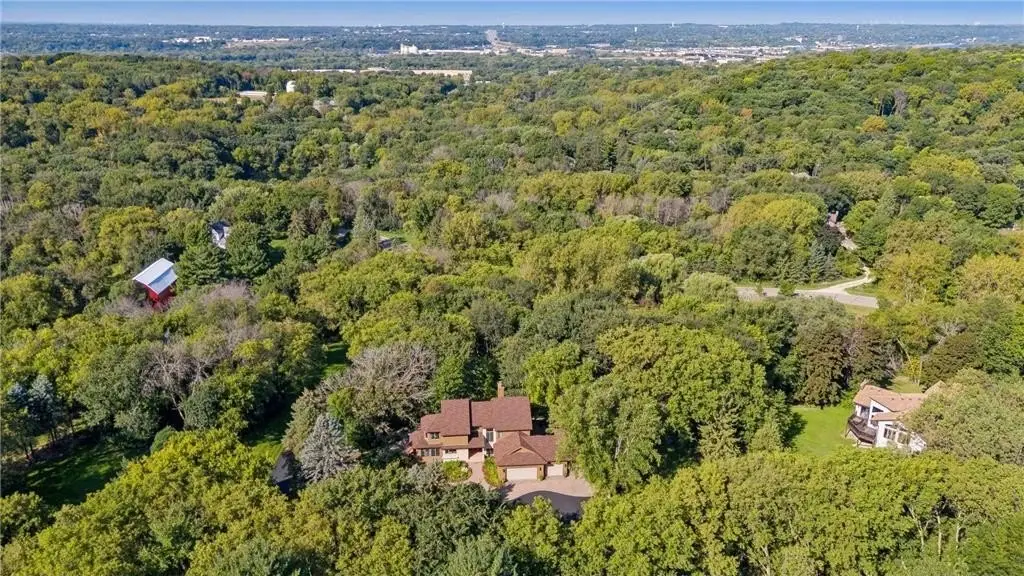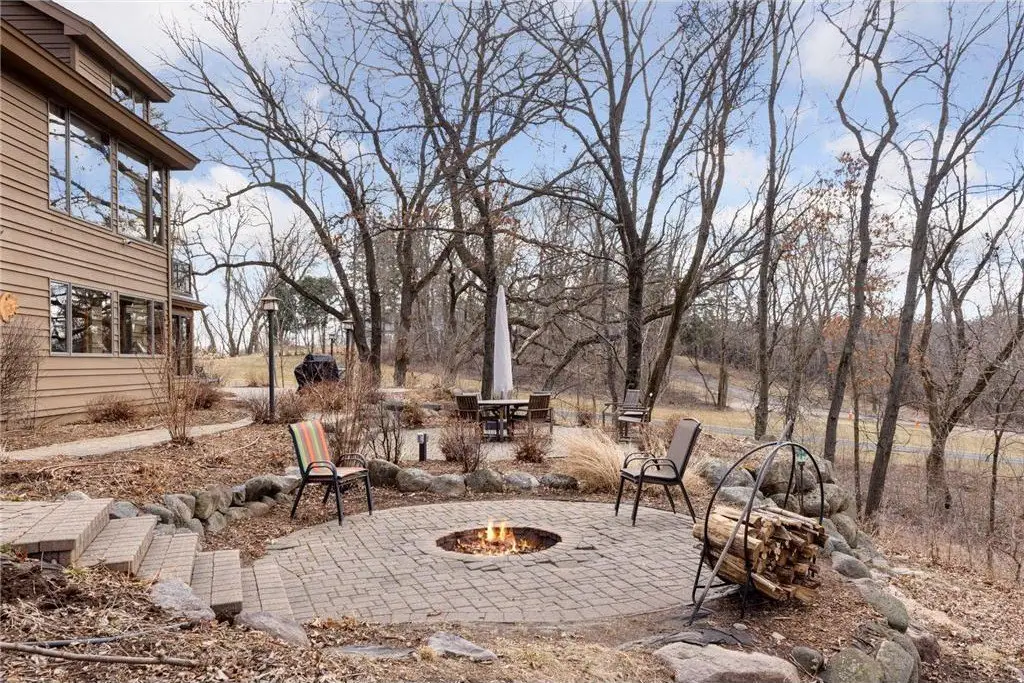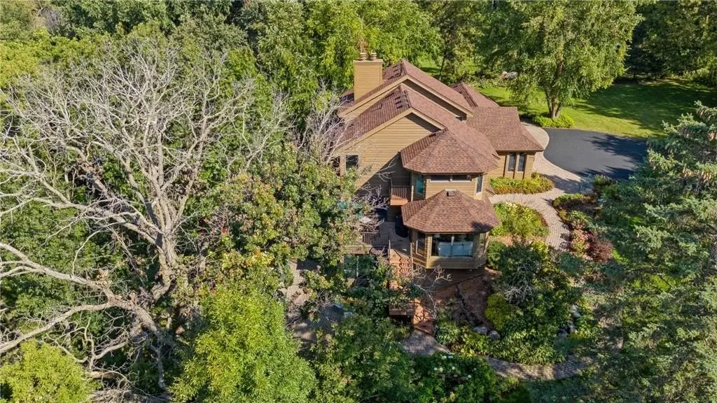 Nestled among the trees, on just over 2.6 acres, you will enjoy the quiet tranquility of this gorgeous 5-bedroom, 4-bath home. Beautifully landscaped and meticulously cared for, the owners have done extensive remodeling of interior and exterior completed March-Sept 2023, including new roof, new deck systems, freshly painted exterior, new wolf kitchen appliances including upscale kitchen cabinetry, and newly installed security system including 4 surveillance cameras. A mound septic system was installed in 2025. You will fall in love the moment you set eyes on this breathtaking property. Enter into a lovely open floorplan filled with multiple windows that engulf the home in natural light. Step down into the vaulted living room & feast your eyes on to see he grand floor-to-ceiling double sided stone wood-burning fireplace. An informal dining room leads to the maintenance-free deck and backyard oasis, including a magnificent stone paver walkway surrounding the home and multiple patios to enjoy the beauty of nature that surrounds you. Spend summer nights roasting s’mores around the firepit. The newly renovated gourmet kitchen offers Corian quartz countertops, decorative tile backsplash, stainless-steel appliances including a Wolf double oven and cooktop, ample cupboard and counter space, and an oversized island to die for! Cozy up with a cup of coffee in the bright breakfast nook. Appreciate the modern lighting, fixtures, and refinished wood floors. A comfy office warmed by a wood burning fireplace and a sizable laundry room complete the space. The upper-level primary highlights built-in cabinetry, a charming sitting nook, a balcony, a private bath with two vanities, a walk-in shower, and a luxurious jetted soaker tub. Stroll through an intimate office space on your way to two additional bedrooms and a full bath. The lower level is primed for entertainment, with a sizable great room featuring a stunning stone wood-burning fireplace, a built-in entertainment center, and bench seating with hidden storage. Gather your friends around the wet bar and grab a bottle of wine from the cellar, which holds up to 200 bottles. Bask in the picturesque view from the sunroom and delight in two additional bedrooms, a full bath, and a soothing sauna. An attached three-car garage with access to an additional 1-stall garage affords plenty of storage space. Appreciate the newly installed security system including 4 surveillance cameras, for your peace of mind. The home inspection has been completed for you. See supplements for photos, tour, Matterport Floorplan, and more.