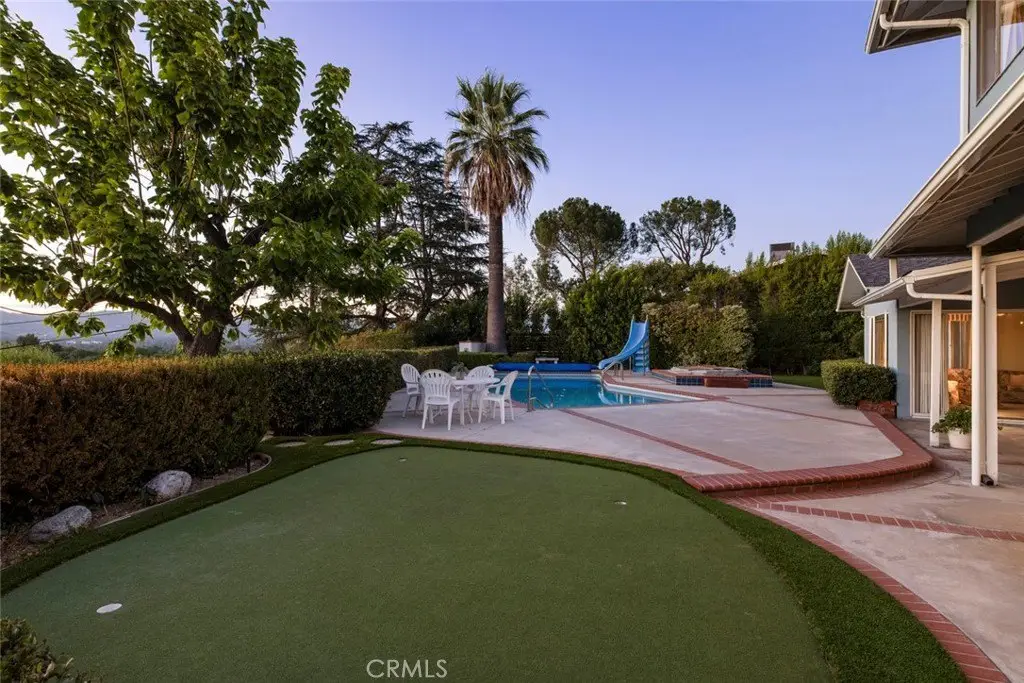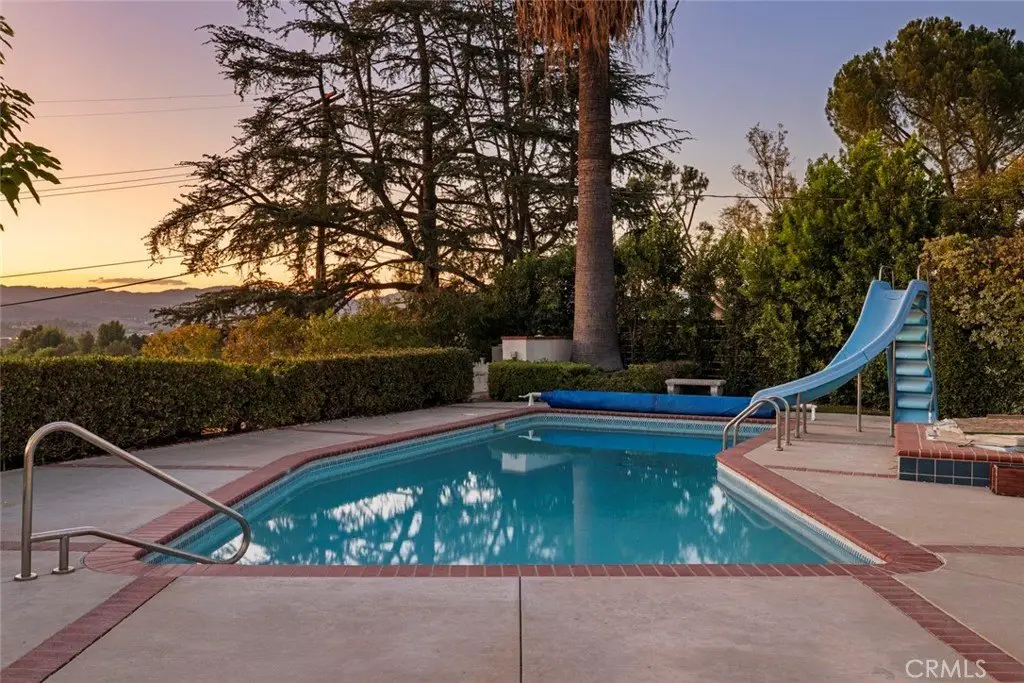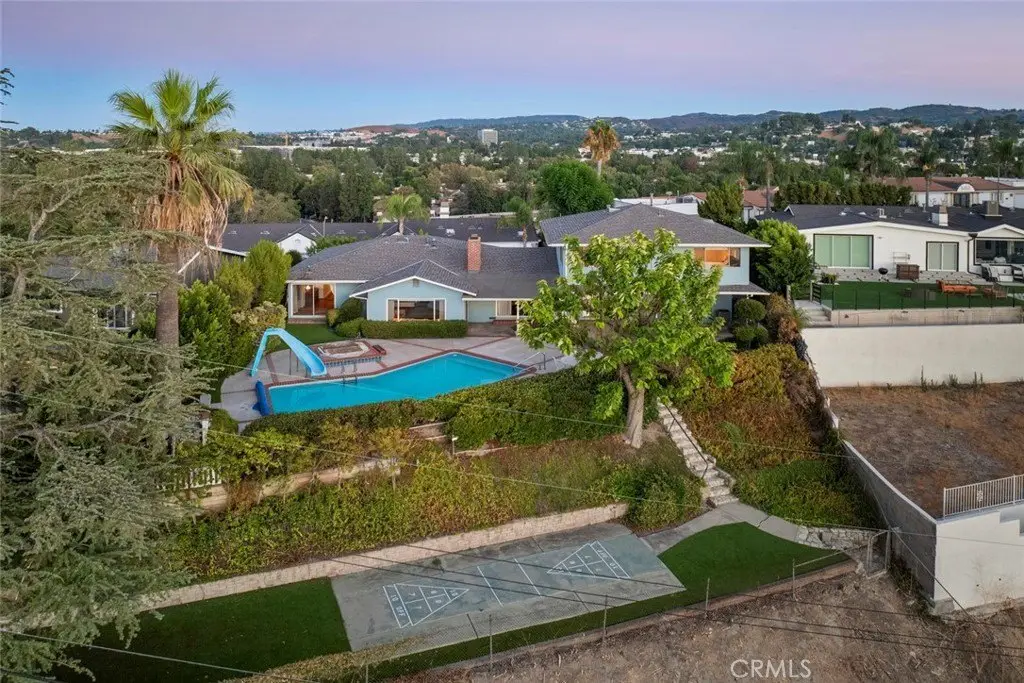 First time on the market in over 60 years! Pride of ownership shines throughout this six-bedroom pool home with breathtaking valley views perched on one of the most coveted streets in Woodland Hills. The main level features generous living spaces, including a primary suite, designed for effortless indoor-outdoor living. Upstairs, you'll find three additional bedrooms, an office, and a full bathroom. With its flexible layout, the second floor presents endless possibilities—create an ADU, mother-in-law suite, teen retreat, or an expansive primary suite with sweeping views. The backyard is an entertainer’s dream with a sparkling pool, putting green, a lower yard complete with a shuffleboard court, and stunning views. Nestled on a quiet street just minutes from world-class shopping, dining, The Village at Topanga, freeway access, and highly rated schools, this home perfectly blends serenity and convenience. With timeless charm, an unbeatable location, and exceptional potential, this property is ready to become a true showstopper.