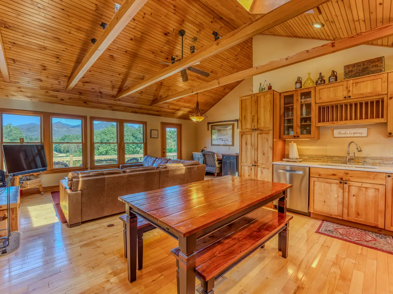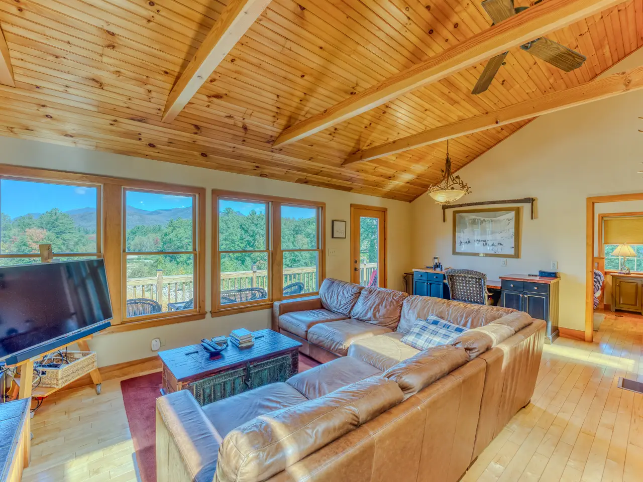 Rare Riverfront Retreat with Unmatched Views in the Heart of the White Mountains. A luxurious riverfront escape offering the best of both worlds: approximately 400 feet of prime, accessible frontage on the Pemigewasset River and stunning views down the mouth of Franconia Notch. Perched atop a scenic granite ledge on just under an acre, this remarkable property provides the perfect blend of nature, privacy, and convenience. Located less than a mile from Main Street in Lincoln, just three miles to Loon Mountain, and 10 miles to Cannon Mountain, you’re right in the heart of all the White Mountain region has to offer. Inside, the home features a bright and open layout, with a variety of rich hardwood floors and elegant tile throughout. The upper level boasts a spacious open-concept kitchen and living area, centered around a beautiful fireplace and flowing seamlessly out to a large deck—perfect for entertaining or soaking in the view. The primary suite occupies the top level, complete with a large walk-in closet and private access to the upper deck. Multiple stairways lead from the home to the yard, riverbank, and a cozy fire pit area. This home is being sold fully furnished, with an established rental history and professional property management in place for a seamless investment opportunity or private retreat. Private showings only—please do not enter the property without a scheduled appointment. Currently used as a four-bedroom home (with a three bedroom septic system).