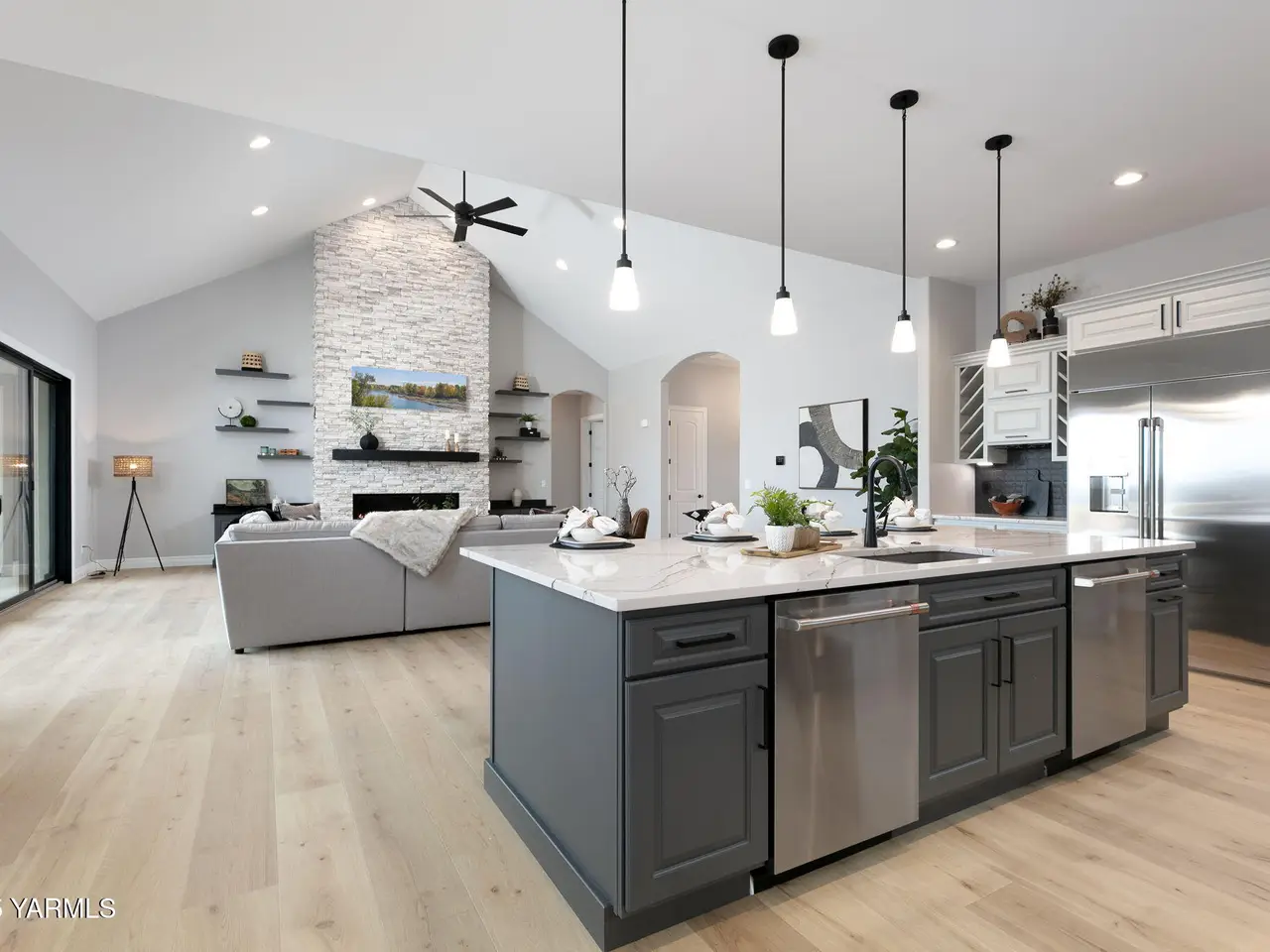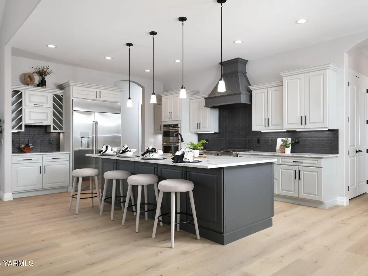 Discover modern luxury and elegance in this meticulously crafted 4,200-plus square foot home, situated on 3.18 acres within an exclusive West Valley gated community. Thoughtfully designed for both entertaining and everyday comfort, this home welcomes you with a vaulted foyer and an expansive open-concept living area anchored by a stunning floor-to-ceiling gas fireplace. The gourmet kitchen is a chef's dream, featuring granite countertops, top-of-the-line stainless appliances, double ovens, and double dishwashers, all complemented by a butler's pantry, perfect for meal prep and storage. A formal dining area and dedicated home office/den offer additional functional and elegant spaces. The luxurious primary suite is a serene retreat with a spa-inspired en-suite bathroom, including a custom tiled walk-in shower, soaking tub, dual vanities, and a generous walk-in closet. A junior suite with a private en-suite bath ensures comfort for guests or multi-generational living. Outside, the possibilities are endless with expansive grounds, a covered back patio, and a fully equipped outdoor kitchen. Energy-efficient solar panels and a three-car garage with an EV charging station add to the modern conveniences. With a tile roof and stucco siding for low-maintenance living, this property is both elegant and practical. Located in a secure gated community, this one-of-a-kind home offers unparalleled luxury, comfort, and the space to bring your lifestyle dreams to life.