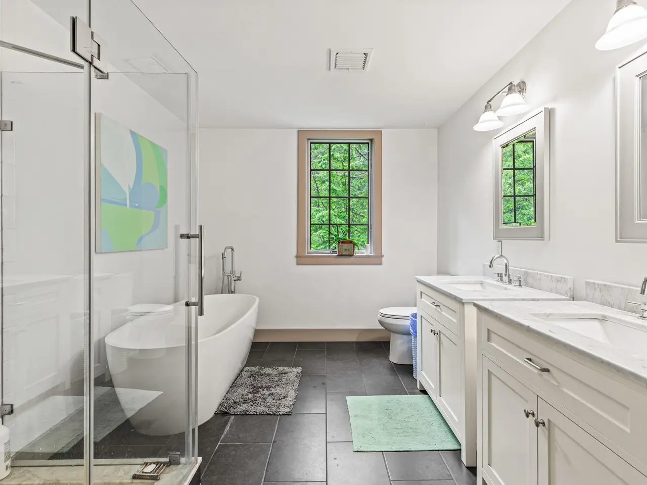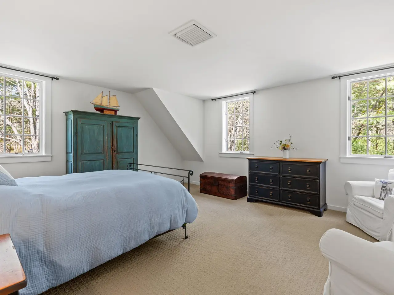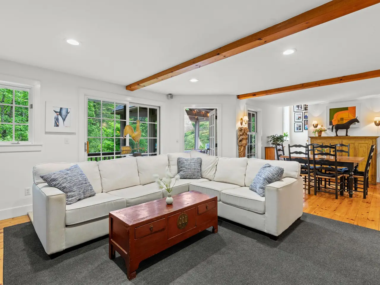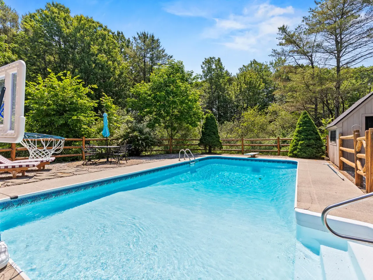 Nestled on 9.21 acres of wooded land, this beautiful property offers the perfect blend of privacy, comfort, and convenience - just a few minutes drive to Yarmouth Village and steps to Pratt's Brook Park, with its 220 acres and six miles of walking and cross-country skiing trails. A winding 600-foot driveway leads you from Ledge Road to a meticulously maintained farmhouse, architecturally designed and built in 2000. Encompassing over 3,800 square feet across three levels, this home provides generous living spaces and indoor parking for three vehicles. The first floor welcomes you with a relaxed, open-concept layout featuring a large kitchen with a center island and walk-in pantry, adjoining a spacious dining area and cozy family room with a wood stove. Just beyond, a screened three-season porch overlooks the backyard and the heated, in-ground pool-perfect for entertaining or quiet summer evenings. A separate living room with a wood-burning fireplace, mudroom entry, and half bath complete the main level. Upstairs, you'll find four spacious bedrooms, including a serene primary suite with a walk-in closet, renovated master bath, and a private adjoining office. Two additional fully updated bathrooms serve the other bedrooms, offering comfort and modern convenience for family or guests. The lower level consists of 550 square feet of finished gym/playroom and a full, separate workshop. The home also includes a central air conditioning system. An adjacent 3.12-acre parcel is also available for purchase at a reduced rate to the buyer of this property, providing the opportunity to expand or develop one or two additional lots. Located in the desirable Ledge Road neighborhood, this home offers a rare combination of seclusion, natural beauty, and community, just minutes from Yarmouth's award-winning public schools and charming village amenities.