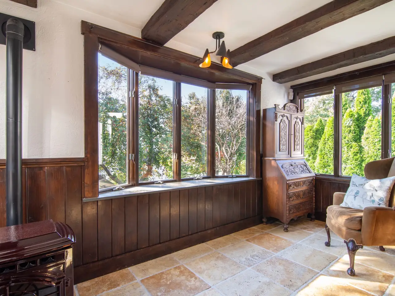 Welcome to this beautifully maintained 3-bedroom which lives like a 4 bedroom, 3-bath Tudor nestled on a quiet, newly paved cul-de-sac in the heart of Lincoln Park. Combining timeless charm with modern amenities, this residence offers a lifestyle of comfort, privacy, and convenience. Thoughtful renovations were completed with careful attention to preserving the homes original architectural features.The exterior showcases classic English Tudor architecture with red windows, stonework, exposed black beams, and white stucco, framed by a charming archway side entrance and a long private driveway. Step inside through the welcoming entryway into a spacious and sun-filled interior designed for both entertaining and everyday living.The first floor features a grand dining room with a wood-burning fireplace and oversized window, perfect for gatherings. A sun-filled family room overlooks Kneeland Avenue and flows seamlessly into the expansive kitchen with custom cabinetry, stainless steel appliances, radiant-heated floors, copper farmhouse sink, wainscoting, and antique 1800s wood-beam ceilings. A bright sunroom with door leading to the deck and backyard, a serene spot for morning coffee or reading. A flexible bedroom or den along with a full bathroom complete this level.Upstairs, the primary suite offers an en-suite bath with tub and shower combination and a walk-in dressing room with dual closets. Two additional spacious bedrooms, each with double closets, and a full hall bathroom. The second-floor landing opens to a private terrace with stunning views. A finished walk-up attic provides a carpeted open plan area with a walk-in closet and endless possibilities.The lower level is a true entertainers delight. It features a recreation room with a vintage wood bar, tin ceiling, recessed lighting, summer kitchen, and full bath with walk-in shower. Also, laundry room, storage room and utilities and direct access to the two-car garage.The private backyard is fully fenced with cedar Nantucket style fencing, a paved patio, and mature trees, perfect for relaxing or entertaining. Additional amenities include central air, radiant floor heating, sprinkler system, and security system. Additional, finished basement 524sq. ft. and attic 251sq. ft. not included to the total square footage.Ideally located just minutes from express buses, #4 subway, Metro North (approximately 30 minutes to Grand Central), major parkways, shopping, and Tibbetts Brook Park, this home offers the best of suburban tranquility and city convenience.