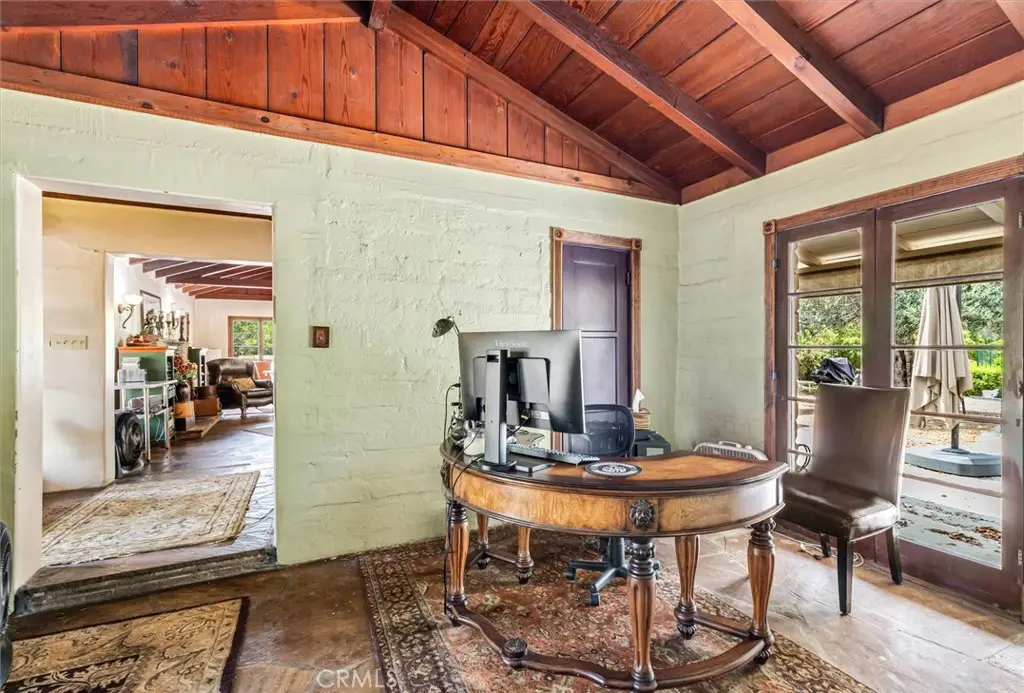 Magnificent one-of-a-kind property in the heart of Yorba Linda ~ First time on the market in over 50 years ~ Charming 5 bedroom adobe pool home situated on 3.7 acres (approx.) of citrus trees and secluded grounds ~ Superb craftsmanship in this home featuring stone floors, wood beamed ceilings, wood framed French doors and windows and vintage stone fireplace ~ The original home was built in 1946 (per title) and has been remodeled and additional living space was added in 2001 (approx). Remodeled kitchen features a spacious island, greenhouse window, apron sink, 5 burner gas stove with range hood, self-closing custom cabinetry, granite and quartz counters and a wine frig. ~ Distinctive living room and dining room with unique architecture and views of the surrounding land ~ Primary bedroom with stone fireplace, beamed ceilings, wood flooring and casual seating area ~ Spacious remodeled primary bathroom with an oversized shower and huge walk in closet ~ Additional 2 bedrooms are ample in size and share a hall bathroom ~ Upstairs features a bonus room, 2 additional bedrooms and a bathroom ~ Tranquil pool and spa surrounded by the majestic surrounding grounds ~ 2 car detached garage with 1/2 bath ~ Covered front and rear patios to relax and enjoy the tranquility and serenity of the vast wide open spaces and stately trees that brings country living to you ! This is a spectacular property and there is nothing else like it in Yorba Linda.