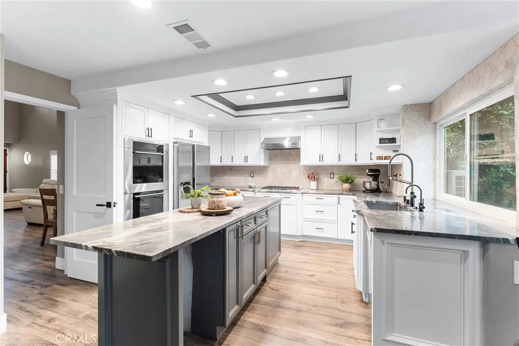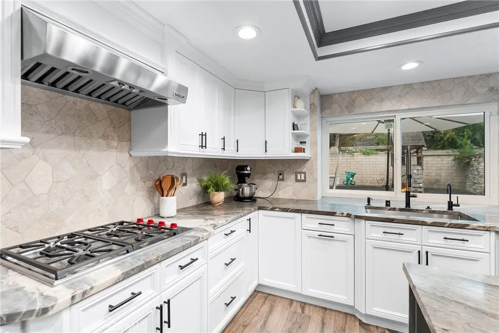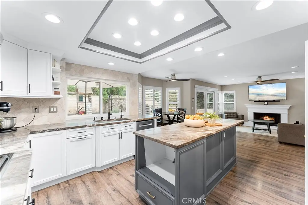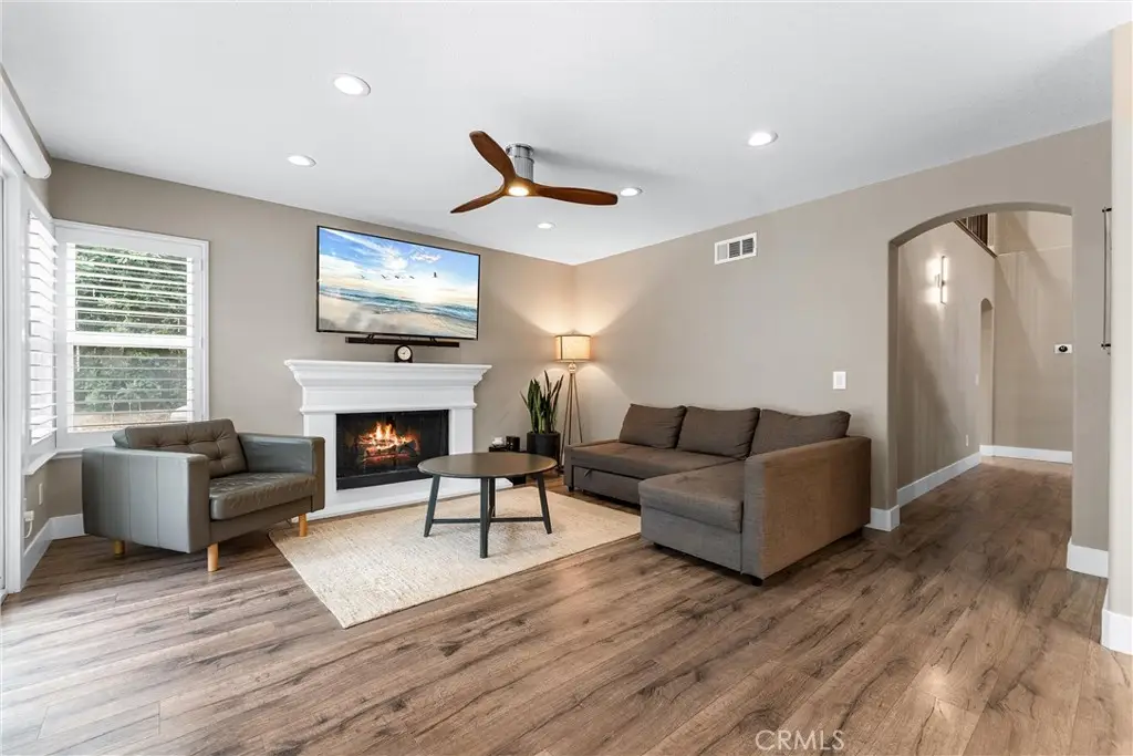 Welcome to Fairmont Terrace, a highly sought-after gated community in Yorba Linda. This beautifully remodeled two-story home blends modern design, smart upgrades, and comfortable living in one seamless package. Step inside and you'll be greeted by high ceilings, a brand-new custom staircase, and a fireplace featuring a statement marble mosaic design. Every detail in this home has been upgraded, including solid wood doors, elegant casings, recessed lighting throughout, and custom closet organizers in all bedrooms. The heart of the home is the chef's kitchen, redesigned for both entertaining and everyday living. Quartzite countertops and a marble backsplash pair beautifully with high-end appliances, including a Wolf range and hood, Wolf M Series double ovens, and a Bosch dishwasher. The kitchen features a spacious island and cabinetry with endless storage, as well as custom solid oak shelving in the generous pantry. Retreat upstairs to a primary suite designed to feel like a luxury spa. High ceilings and a stunning bath create a true escape, with custom cabinetry and quartz countertops, a high-end Japanese soaking tub, pebble-stone shower floor, marble mosaic flooring throughout, and a separate space with a remote-controlled Toto toilet. Two additional upstairs bedrooms share a hall bath that has also been fully redesigned, with quartz counters, a custom tub and shower, and a Toto toilet. The downstairs bedroom and full bath have likewise been fully remodeled, providing comfort and flexibility for guests or multi-generational living. Efficiency and convenience are built in with paid-off solar panels, a Tesla Powerwall, whole-home water filtration, reverse osmosis in the kitchen, dual-zoned HVAC with new ducting, and a whole-house fan. The exterior is also newly painted. Step outside to a spacious backyard with a patio and fruit trees, perfect for gatherings or quiet evenings at home. The back slider also features a convenient remote-controlled shade. This home is more than move-in ready -- it's a rare opportunity to own a highly upgraded, energy-smart property in one of Yorba Linda's most desirable communities, close to top-rated schools, shopping, and dining. Don't miss this incredible opportunity!