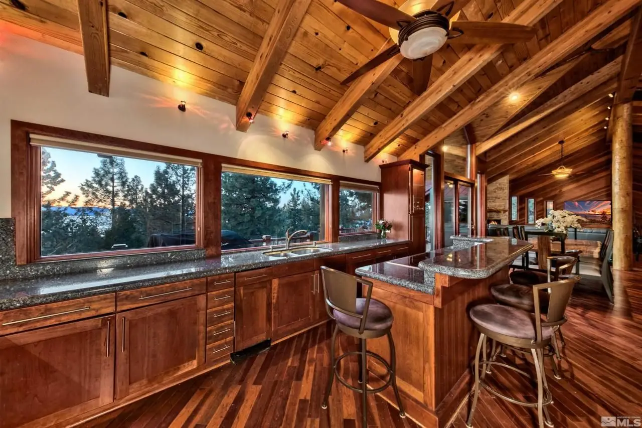 Welcome to Hidden Woods one of the most desirable neighborhoods on the East Shore of Nevada. This spacious lakeview mountain-style residence showcases grand open-beam ceilings, six bedrooms, 4.5 bathrooms, offering over 4496 sqft of living space, including a wine cellar, theater and gym. Boasting over 1000 sqft of recently stained Redwood decks. This home has all you need to relax and restore the soul. There is more than enough room for family and friends. Set on a generous half-acre lot, this property boasts distinctive features including a loft above the great room, perfect for a cozy sleeping nook or home office. The residence also has a remarkable 920+ bottle wine cellar, a dedicated home theater, and a spacious family game room. The luxurious master suite has been thoughtfully designed with a remodeled bathroom, while additional amenities include a heated driveway, 48" Wolf Range, 48" fridge, outdoor spa, indoor sauna, and three levels of outdoor decks. You can enjoy the Tahoe lifestyle to the fullest with direct access to US Forest Service hiking trails, minutes to Round Hill Pines Resort, nightlife and the renowned slopes of Heavenly Ski Resort. Hidden Woods Haven is perfect for anyone wanting a true Tahoe mountain getaway.