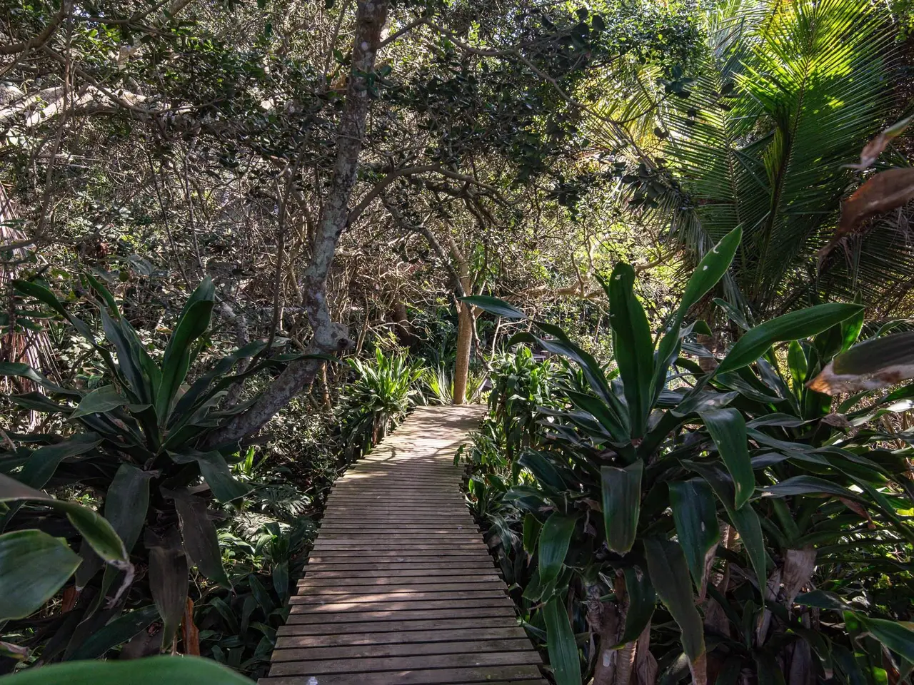 Exclusive to Chas Everitt - A fairytale property where old-world, colonial charm meets tropical island bliss. This is, without a doubt, the most unique home within the village, where nature's embrace is felt at every turn. Nestled amidst a tapestry of dense vegetation, this property, like a hidden treasure, offers the ultimate retreat, shrouded in a cloak of complete privacy. As you approach, the captivating allure of the beachfront location beckons you closer, promising a sanctuary unlike any other. The main house exudes an air of grandeur, with its magnificent formal lounge, adorned with a crackling fireplace that casts a warm glow, creating an inviting ambience. The open-plan living area seamlessly combines a cosy TV room and an elegant dining area, where cherished memories are destined to be made. Wooden sliding doors and shutters flank both sides of this space, revealing enchanting patios that present two different worlds. One leads you to the awe-inspiring pool area, where sparkling waters invite you to immerse yourself in blissful serenity. And just when you think this masterpiece couldn't offer more, a breathtaking surprise awaits. From the pool area, an elevated walkway invites you to embark on a journey to a private viewing area, where the quieter beaches of Zinkwazi unveil themselves in all their glory. The kitchen, thoughtfully positioned off the dining area, boasts modern concrete countertops and a sliding window that effortlessly connects to the protected courtyard, which is ideally located adjacent to the dining area, ensuring seamless entertaining. The main bedroom, nestled within this section of the home, offers a panoramic vista of the lush gardens, visible through the sliding door and windows. A full en-suite bathroom, adorned with generous windows, reveals breathtaking views of the sub-tropical gardens and the duck pond that graces the rear of the property. To complete this haven of tranquillity, a massive walk-in wardrobe awaits, ready to house your cherished possessions. Venturing further, four additional bedrooms unfold, nestled beyond the protected courtyard. Two bedrooms overlook the driveway area, sharing an interleading bathroom that effortlessly combines functionality and elegance. On the opposite side, two more bedrooms await, each offering sweeping views of the magnificent gardens that surround them. These bedrooms boast their own ensuite bathrooms, ensuring comfort and convenience for all who reside within. The property also boasts spacious staff quarters and three garages, catering to every need. This home, a true masterpiece, is not merely a property, but an oasis that promises to awaken your soul and captivate your every sense.