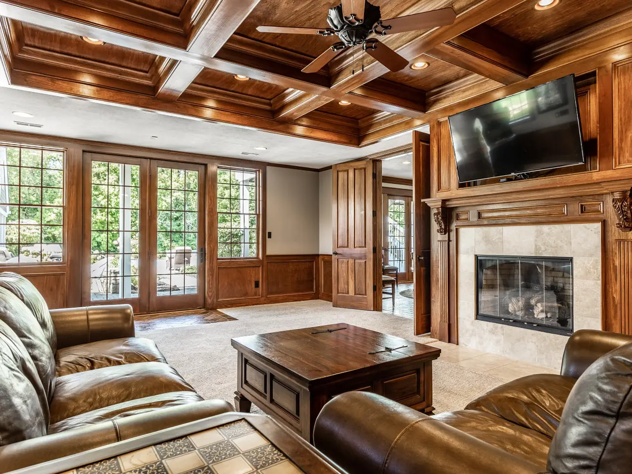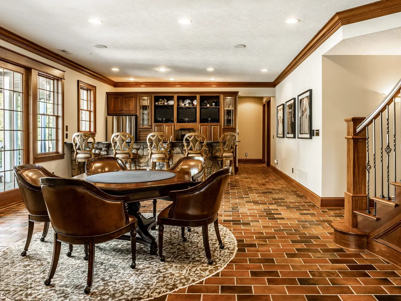 Nestled on 4 private acres at the end of a quiet cul-de-sac, this extraordinary 8-bedroom, 7 full and 2 half bath estate offers the perfect blend of elegance, warmth, and everyday livability. It's more than just a house....it's a home. Offering 9,900+ finished square feet, this home was designed with a calming, inviting flow. The enchanting floor plan showcases soaring ceilings, abundant natural light, and exquisite craftsmanship at every turn. The main level features newly refinished hardwoods throughout, anchored by a show-stopping great room with an oversized stone fireplace and coffered ceilings. The dreamy chef's kitchen is a true centerpiece, featuring double commercial-grade gas ovens and ranges, quartz surfaces, custom backlighting, and seamless access to both formal and casual dining areas. The primary suite is a sanctuary of its own, complete with a private sitting room, cozy fireplace, spa-inspired bath, and direct access to the outdoor deck. Up its own private staircase is a fully outfitted in-law/guest suite perfect for extended stays. The finished lower level is equally impressive, bathed in sunlight through two sets of French doors and designed for both entertainment and relaxation. Highlights include a state-of-the-art theater room, full wet bar, wine cellar, exercise room, and two additional fireplaces. Outdoor living is equally spectacular. Framed by lush woods, the in-ground pool with poolhouse creates a resort-like setting, while a basketball court, soccer field and baseball diamond offer endless recreation. Enjoy 'smores by the firepit, watch pool shenanigans, or enjoy a happy hour cocktail from the enormous deck--the choice is all yours. Property parcel includes 2 lots, allowing for additional building options. PVE Elementary and ZMS Middle School.