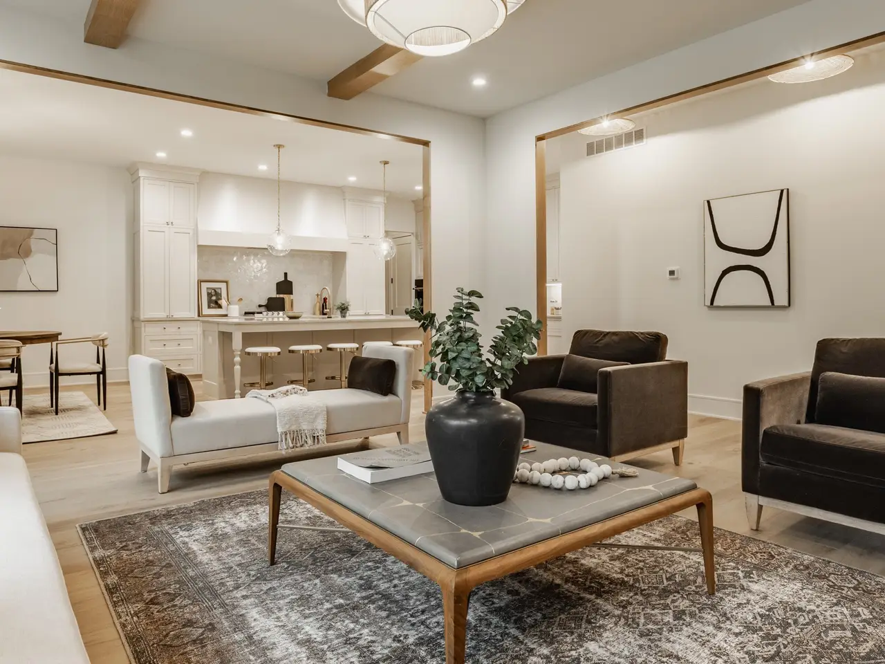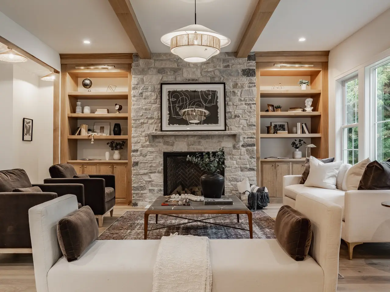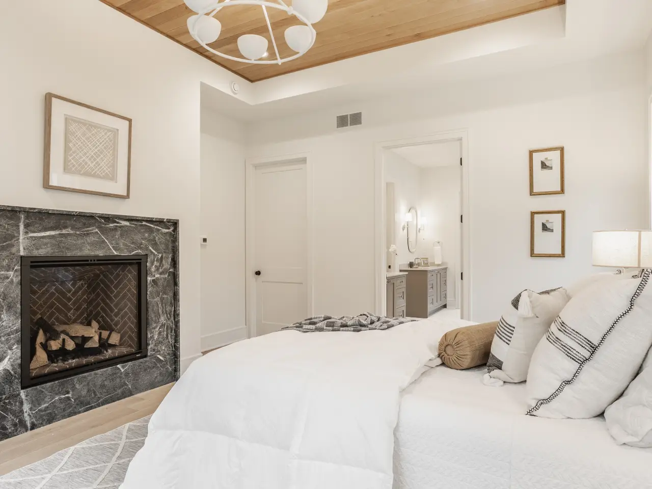 Meticulous design and quality craftsmanship define this new residence by Ett Hem Properties. Situated on one of the neighborhood's most desirable lots, every detail has been carefully considered, from the warmth of custom, white oak finishes and hardwood floors to built-ins, designer lighting, and hand-selected tile. Ten-foot ceilings and expansive windows fill the open plan with natural light, balancing architectural sophistication with everyday comfort. The gourmet kitchen showcases custom cabinetry, Taj Mahal stone, premium appliances, and an oversized island-perfect for entertaining or daily family life. The main-level primary suite offers a serene retreat with a fireplace framed in soapstone, a spa-inspired bath with walk-in shower, separate soaking tub, dual vanities and a custom walk-in closet, while a secondary main-floor bedroom provides flexible space for guests or a home office. Upstairs, generously proportioned bedrooms, a versatile loft, and a spacious bonus room continue the theme of thoughtful design with hardwoods throughout and carefully chosen tile and stone. The finished lower level expands living and entertaining options with a wet bar, guest suite, and open areas ideal for a theater, game room, or fitness space. Modern systems-including multi-zone HVAC, on-demand water, and two conveniently located laundry rooms-ensure comfort and practicality year-round. Outdoors, a covered porch and private backyard framed by mature trees provide a quiet retreat. With six bedrooms, 5 full baths, and a location just minutes from Zionsville's shops and restaurants, this home combines thoughtful design, quality finishes, and timeless appeal. Welcome home!