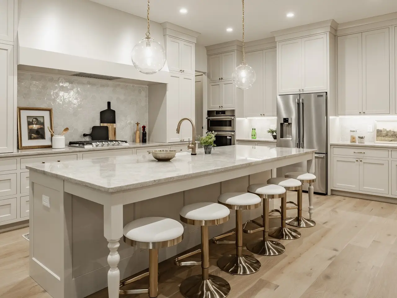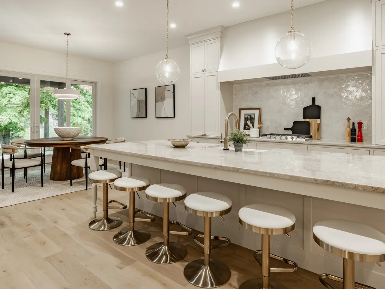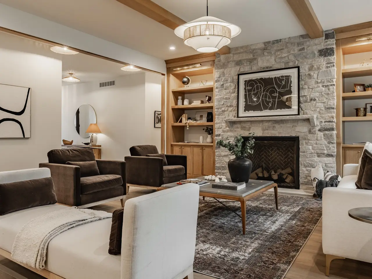 Meticulous design and quality craftsmanship define this new residence by Ett Hem Properties. Situated on one of the neighborhood's most desirable lots, every detail has been carefully considered, from the warmth of custom, white oak finishes and hardwood floors to built-ins, designer lighting, and hand-selected tile. Ten-foot ceilings and expansive windows fill the open plan with natural light, balancing architectural sophistication with everyday comfort. The gourmet kitchen showcases custom cabinetry, Taj Mahal stone, premium appliances, and an oversized island-perfect for entertaining or daily family life. The main-level primary suite offers a serene retreat with a fireplace framed in soapstone, a spa-inspired bath with walk-in shower, separate soaking tub, dual vanities and a custom walk-in closet, while a secondary main-floor bedroom provides flexible space for guests or a home office. Upstairs, generously proportioned bedrooms, a versatile loft, and a spacious bonus room continue the theme of thoughtful design with hardwoods throughout and carefully chosen tile and stone. The finished lower level expands living and entertaining options with a wet bar, guest suite, and open areas ideal for a theater, game room, or fitness space. Modern systems-including multi-zone HVAC, on-demand water, and two conveniently located laundry rooms-ensure comfort and practicality year-round. Outdoors, a covered porch and private backyard framed by mature trees provide a quiet retreat. With six bedrooms, 5 full baths, and a location just minutes from Zionsville's shops and restaurants, this home combines thoughtful design, quality finishes, and timeless appeal. Welcome home!