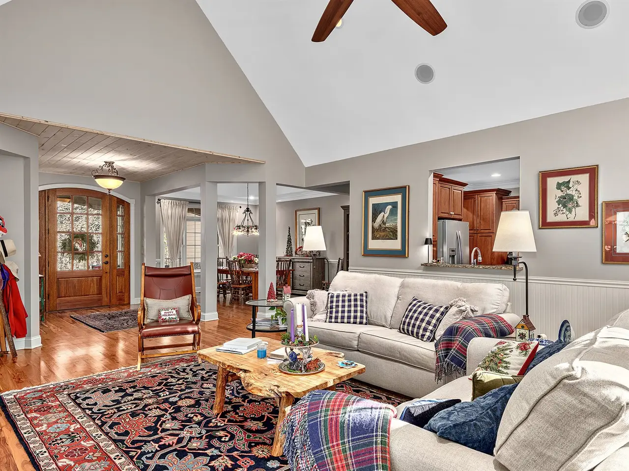 Don't miss out on this beautiful home situated on a cul-de-sac in a quiet, serene neighborhood! It boasts amazing Australian Cypress hardwood flooring throughout, including the primary bedroom. The primary bath has his and hers walk-in closets for your enjoyment. The shower in the primary bath is a large, walk-in shower and is beautifully tiled. Granite countertops throughout. The other two bedrooms on the main level have just had new carpeting installed The upstairs bedroom is spacious and is equipped with a wet bar, refrigerator, microwave and a full bath. There is a room adjoining for use as a crafts room, work-out area, or whatever needs you have. From this room, there is access to a large unfinished attic area which has endless possibilities. In the back yard, there is a 100 year old fireplace and chimney which was part of the of the original homesite. This amazing fireplace is just steps away from a patio off the back of the house for incredible outdoor entertaining.