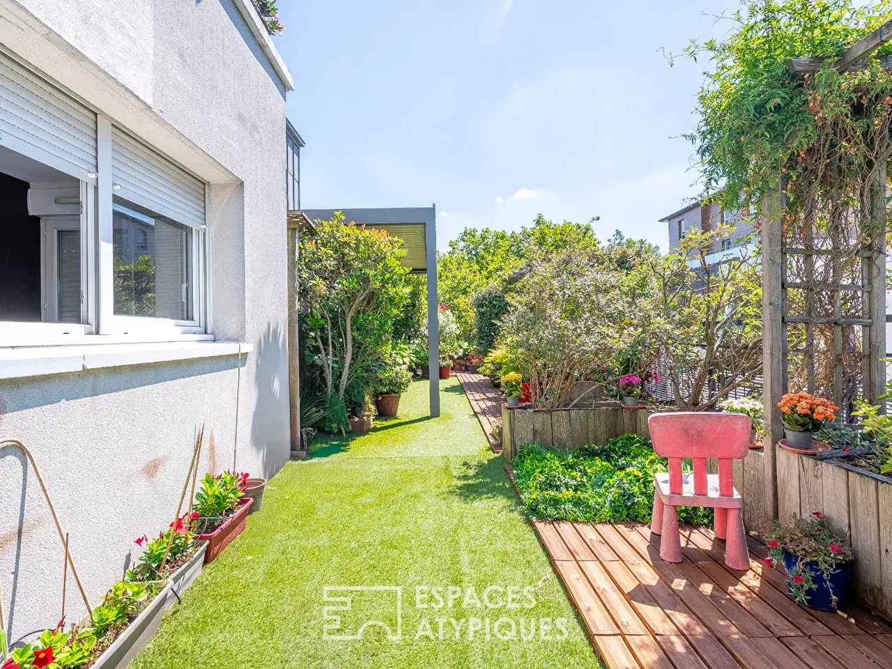 In the heart of the Confluence district of Alfortville, close to the banks of the Seine and just a few minutes from the gates of Paris, this top-floor duplex apartment offers 159 m2 of floor space and 125 m2 of outdoor space, in a new co-ownership built in 2007. This is a rare place to live, designed like a perched house, with its abundant greenery, vibrant interior architecture and contemporary comforts. From the moment you enter, the generous living room (56.5 m2) opens up the view, with its triple aspect (east, south, west) and double height that sculpt the volume of the room. The smoked oak floor, the rhythmic openings, the fluid flow: Everything contributes to a feeling of space and freedom. The open-plan fitted and equipped kitchen is both warm and functional, with its solid oak units and Hainaut blue stone worktops. The terrace runs the full length of this living space, creating a veritable hanging garden. Its rich, well-tended planting (shrubs, flowers, trees) invites contemplation. A dining area, sheltered by a bioclimatic pergola, lets you live outside from spring to autumn. A light-filled office with views over the plant-filled terrace is ideal for inspired teleworking. A shower room with WC completes this first space. The first floor, accessed by a steel staircase, overlooks the living room in an almost suspended atmosphere. There is a light-filled hallway, a shower room with WC, additional outdoor space (ideal for a solarium), three bedrooms, including a vast 24 m2 master suite and an en suite bathroom with whirlpool bath. Two basement parking spaces equipped with an electric charging point complete the package. The property is located just a few minutes' walk from Alfortville's twice-weekly covered market, as well as the town centre (less than 10 minutes' walk) and its many shops (Picard, Monoprix, craft traders, etc.).Metro line 8 'Ecole Veterinaire de Maisons-Alfort': 12 minutes' walk Shops and schools (creche, nursery and primary): nearby Property subject to co-ownership status. REF. 11931Additional information* 4 rooms* 3 bedrooms* 1 bathroom* 2 shower rooms* Floor : 5* 5 floors in the building* Parking : 2 parking spaces* 140 co-ownership lots* Annual co-ownership fees : 5 220 €* Property tax : 4 022 €* Proceeding : NonEnergy Performance CertificatePrimary energy consumptionc : 130 kWh/m2.yearHigh performance housing*A*B*130kWh/m2.year27*kg CO2/m2.yearC*D*E*F*GExtremely poor housing performance* Of which greenhouse gas emissionsc : 27 kg CO2/m2.yearLow CO2 emissions*A*B*27kg CO2/m2.yearC*D*E*F*GVery high CO2 emissionsEstimated average annual energy costs for standard use, indexed to specific years 2021, 2022, 2023 : between 1880 € and 2600 € Subscription IncludedAgency feesThe fees include VAT and are payable by the vendorMediatorMediation Franchise-Consommateurswww.mediation-franchise.com29 Boulevard de Courcelles 75008 ParisInformation on the risks to which this property is exposed is available on the Geohazards website : www.georisques.gouv.fr