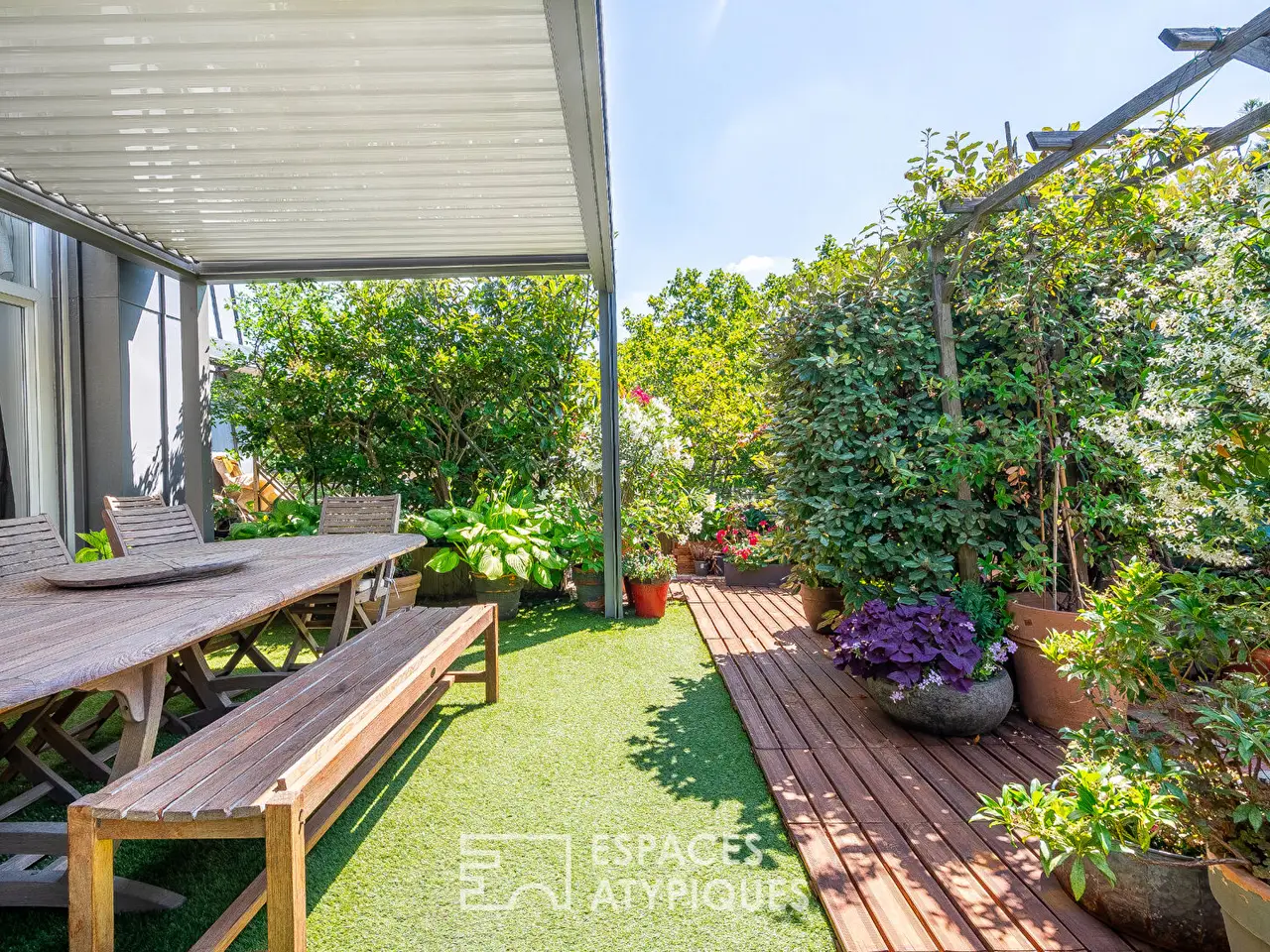 Outdoor terrace creating a hanging garden