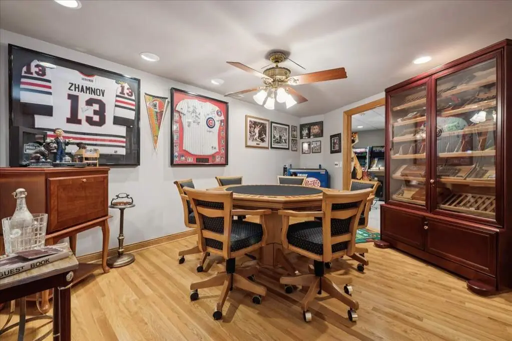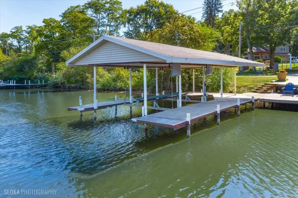 Year-round resort living & entertaining can be yours in this stunning 4 bed, 5.1 bath home with elevated lot on 1.67 acres, offering privacy, a gated entry, mature trees, 1.5 boat slips and seasonal views of the Fox River. This extraordinary property offers an unmatched blend of luxury, recreation, functionality and limitless possibilities to enjoy for years to come! With three levels of living space, the residence boasts 6800 SF above grade and an additional 2163 SF in the walk-out lower level, totaling almost 9000 SF. For the hobbyist or collector there is garage space for up to 12 cars and your own boat storage which includes a 4-car primary garage, a 4-car tandem garage (8 spaces), plus a workshop and 28 x 26 storage/exercise room. The 2200 SF above the secondary garages includes a 64 x 34 Bonus Room has in-line skating flooring and a golf simulator. There is also a large office for WFH and a full bathroom. Step inside to the open concept interior and take in the natural light and soaring volume ceilings. The grand two-story entry with a dual staircase which leads you into the dramatic Great Room with walls of glass, a large fireplace and adjacent wet-bar. The heart of the home is a beautifully appointed kitchen featuring 42" cabinets, granite counters, high-end stainless appliances and a walk-in pantry. The adjacent dining room is perfect for hosting unforgettable dinners and gatherings, while the sunroom is the perfect spot to enjoy your morning coffee or casual evenings grilling out. The tiered concrete patios offer great outdoor space including a built-in fire pit. A mudroom & separate laundry room complete the main level. The spacious primary suite is a private sanctuary, featuring a spa-inspired bathroom with whirlpool tub, walk-in shower, double vanity and excellent closet space. A second ensuite bedroom on the main level is ideal for family or guests while the upper level includes two spacious bedrooms with vaulted ceilings, a tandem bedroom/loft (currently set up as a nursery) and a full bathroom. The lower level was designed for ultimate entertainment and is fun and versatile, with plush seating arranged around a large flat-screen TV, perfect for game nights or movie marathons. A centerpiece of the lower level is a custom cherry wood bar featuring all the essentials. The game room beckons...the pool table is included and there is extra space for a game table and seating. Radiant heat flooring is an excellent add-on feature to enjoy this fun space. At the river there is a total of 85 feet of frontage with concrete docks and decking. The full pier is shared 50/50 with neighbors providing 1.5 boat slips per residence and shared decking. Your portion will include 1 full covered boat slip with an electric lift and room for a wave runner too. The home located on a small shared lane just minutes from downtown Algonquin's shops, restaurants, and small-town charm, and with easy boat access to Port Edwards, The Broken Oar, Kief's Reef, and the Chain of Lakes, this is more than just a home-it's a lifestyle. Bring your boat and embrace the river life today!