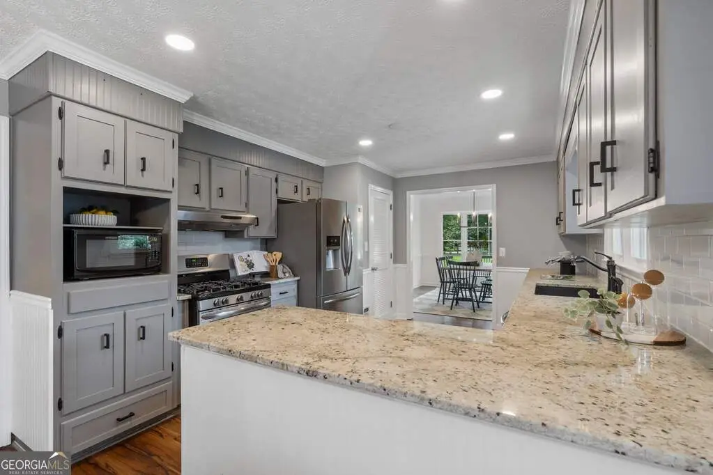 Downtown Alpharetta's Best-Kept Secret-Over an Acre, 4,000+ sqft =Endless Possibilities! Welcome to 290 Dania Drive, a hidden gem at the end of a quiet, tree-lined street just minutes from the vibrant heart of Downtown Alpharetta. Tucked away on over one acre of serene, private land, this expansive 4,258 sq ft residence offers unmatched space, flexibility, and value-there's truly nothing like it on the market! With 2 full kitchens, 2 laundry rooms, 2 fireplaces, and 3 separate living areas, this home is designed for multi-generational living, entertaining, or passive income potential. The fully finished terrace level features a complete in-law suite with private entrances, a full kitchen, bedroom, bath, laundry, and three versatile bonus rooms-ideal for guests, rental income, or a home-based business. And with no HOA, the possibilities are wide open. The main level welcomes you with charming outdoor spaces-a breezy side porch, a relaxing front porch, and a spacious back deck, perfect for enjoying the peaceful surroundings. Inside, the bright and updated kitchen features granite countertops, stainless steel appliances, gas range, and ample pantry space. The dining room offers flexibility for formal or casual gatherings, while the oversized family room impresses with a floor-to-ceiling brick fireplace and double doors spilling in natural light. The primary suite on the main is a true retreat, complete with its own laundry, while two additional bedrooms and a full bath round out the level. Downstairs, the terrace level offers a bedroom, full bathroom, Kitchen, second fireplace, additional living space, and three more finished rooms for your ideal layout-home office, gym, media room, or more. Whether you're looking for a move-in ready multi-generational home, an income-producing property, or a stunning lot to build your dream estate, this one-of-a-kind opportunity in Downtown Alpharetta checks every box. Prime location. Endless flexibility. Over an acre of privacy. Don'