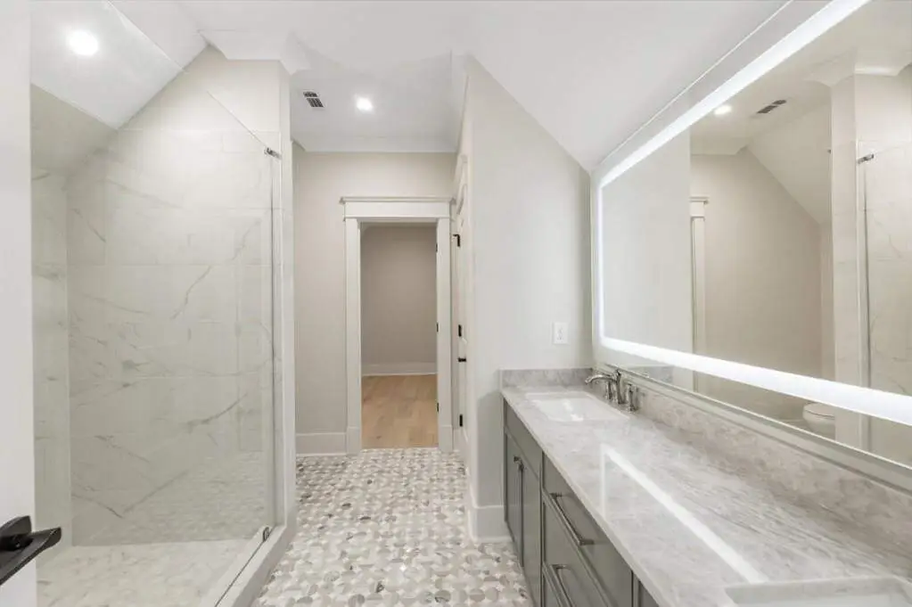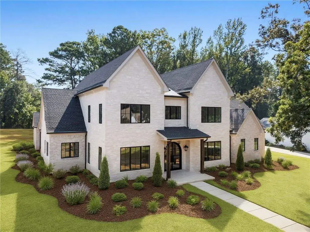 On this quiet street just outside of downtown Alpharetta, enjoy the convenience of a premier location paired with the serenity of a private and level walk out on the main level to the backyard with this gorgeous new construction. This newly built home on just under an acre lot has been thoughtfully designed and beautifully appointed with every upgrade, including a fully installed elevator for effortless access between levels and primary on main level with spacious bedrooms upstairs and three laundry rooms.. The main-level primary suite offers vaulted ceiling with beams and a fireplace as well as access to the backyard and covered porch area. There is abundant storage, and seamless walkout to outdoor living spaces make this residence as functional as it is refined. This elevation is stunning with timeless brick and accented with limestone details and an arched iron entry door sets the tone for enduring craftsmanship from the very first impression. A level driveway leads to the three-car garage with carriage doors, while gas lanterns and cedar columns add warmth and character to the front covered porch. Inside, light-filled rooms with soaring ceilings and rich hardwood floors welcome you. The living room is anchored by a striking 48-inch fireplace and opens to the gourmet kitchen, where custom cabinetry extends to the ceiling, stone countertops shine under designer fixtures, and professional Sub Zero and Wolf-grade appliances make entertaining effortless. A walk-in pantry and butler's area with wine cooler add convenience and charm as well as a scullery featuring additional beverage refrigerator, dishwasher and lots of extra counter and cabinet space for your entertaining and storage needs. The main-level primary suite features vaulted ceilings with cedar beams and a spa-like bath with soaking tub, oversized glass shower, and expansive custom closet. Three car garage with expansive mud room and laundry space. Upstairs, three bedrooms each include private en-suite bath
