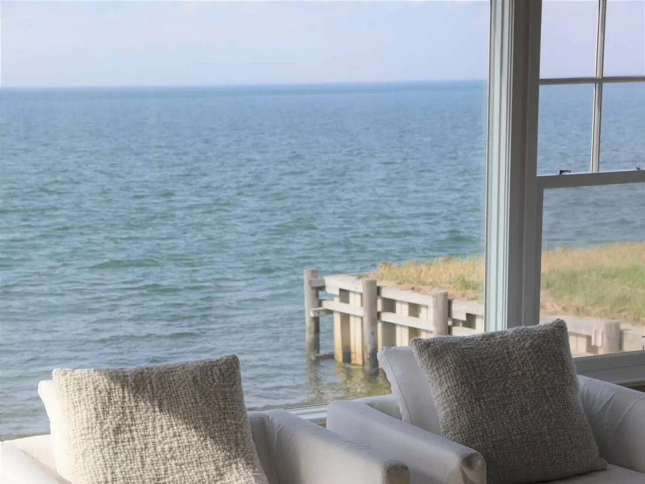 Perched on the water's edge, this recently transformed waterfront house features a timeless design and the luxury of a private beach overlooking the tranquil Gardiners Bay. Imagine leisurely lunches with your feet in the sand, swimming just steps away and watching wide open sunsets day after day. This unique offering includes the .22 acre adjacent lot providing space for a pool and guest house. The main level blends antique wooden beams with sleek Venetian plaster complemented by an abundance of natural light. Every detail, inside and out, is state of the art and has been incorporated to contribute to a feeling of quiet luxury and complete comfort. Natural landscaping from the dunes to the entrance ensures your privacy. A comprehensive list of systems and fittings, as well as a recent survey and certificate of occupancy are available. The home has deservedly garnered attention in multiple design publications. Private showing by appointment.