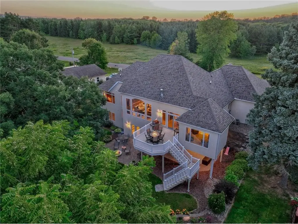 Welcome to your lakeside retreat just one hour from the Twin Cities, nestled on the pristine shores of Lake Wapogasset and Bear Trap Lake. This cozy yet spacious walk-out rambler offers the perfect blend of peaceful seclusion and modern comfort, all within minutes of Amery’s charming downtown, schools, and everyday conveniences. Thoughtfully designed to capture the beauty of its surroundings, the home boasts expansive windows throughout, flooding the living spaces with natural light and offering breathtaking views of the lake. Whether you’re watching a sunrise shimmer over the water or enjoying the golden glow of sunset from your deck, this home invites you to embrace every season. Off the kitchen, a beautiful sunroom provides a serene space to unwind. It’s the perfect spot to enjoy your morning coffee while taking in panoramic lake views, or to curl up with a good book as natural light pours in. It’s a true sanctuary designed for year-round relaxation. The main level features a generous master suite complete with a luxurious walk-in shower and a jacuzzi bathtub private haven for rest and rejuvenation. On the lower level, three additional bedrooms, each with large walk-in closets, provide plenty of space for family and guests. The in-floor heating on this level keeps the home cozy and inviting, even in the heart of winter. Gather around one of the two fireplaces perfect for chilly evenings or entertain with ease in the open-concept great room and dining area, adorned with elegant cove molding and rich, 6-inch custom trim work that brings warmth and character throughout. The home is filled with custom-built cabinetry, showcasing exceptional craftsmanship and attention to detail. The kitchen and utility areas are equally functional and well-appointed, including a spacious laundry room with ample cabinet storage. The utility room is already plumbed and ready for a third full bathroom, offering flexibility for future upgrades. The kitchen and utility areas are equally functional and well-appointed, including a spacious laundry room with ample cabinet storage. A convenient entryway connects the home to a three-car garage, ideal for Minnesota and Wisconsin’s ever-changing seasons. Step outside and embrace the lake lifestyle boating, fishing, swimming, or simply soaking in the peaceful views. Recently upgraded leaf guard gutters add both convenience and peace of mind with low-maintenance durability. Located just two blocks from the Stower Seven Lakes State Trail, you’ll enjoy year-round access to hiking, biking, and snowmobiling. Despite the serene setting, everyday needs are just minutes away: the nearest grocery store is only 3.3 minutes from your doorstep, and both the School District of Amery and the town center are a quick 3-mile drive. This is more than home, it’s a lifestyle. Discover the perfect balance of comfort, craftsmanship, and natural beauty on Wapogasset/Bear Trap Lake.
