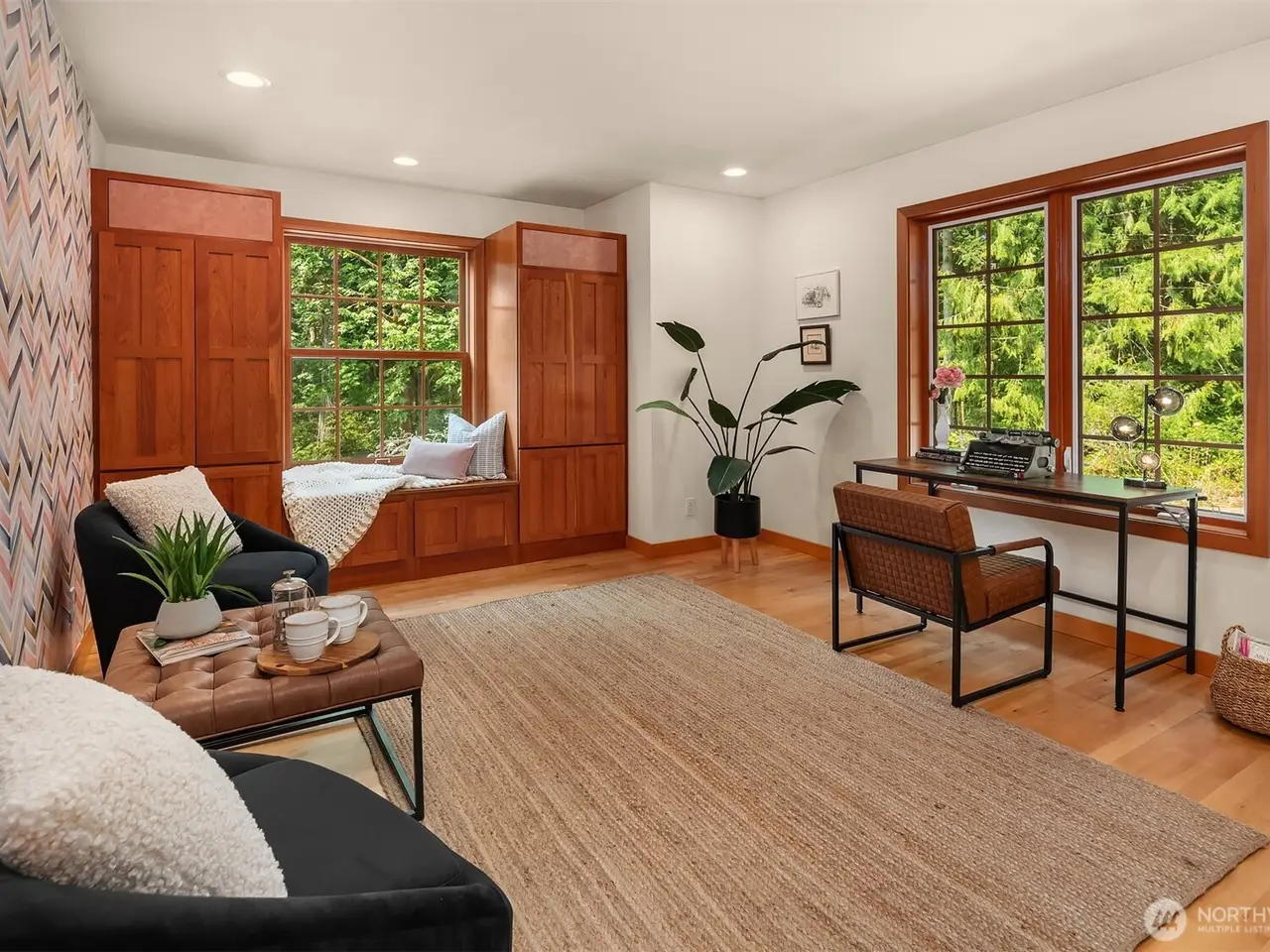 Tucked away on 5 serene acres along Vashon's west side, this retreat-like home blends elegance w/ privacy. Enjoy the sun-filled LR where madrone floors, a cozy fireplace,& soaring vaulted ceilings create a warm, welcoming ambiance. A hidden door reveals the primary suite w/ dual walk-ins, tiled bathroom & FR doors to the deck. A kitchen designed for both beauty & function, showcasing quartz counters, custom cabinetry, & premium appliances including a Liebherr fridge & Bertazzoni range. Upstairs boasts spacious bedrooms, a bonus room & full bath. Radiant floor heating runs throughout for comfort in every season. A 2-car garage & EV charging completes this peaceful island sanctuary--an inspiring place to live, entertain & recharge.