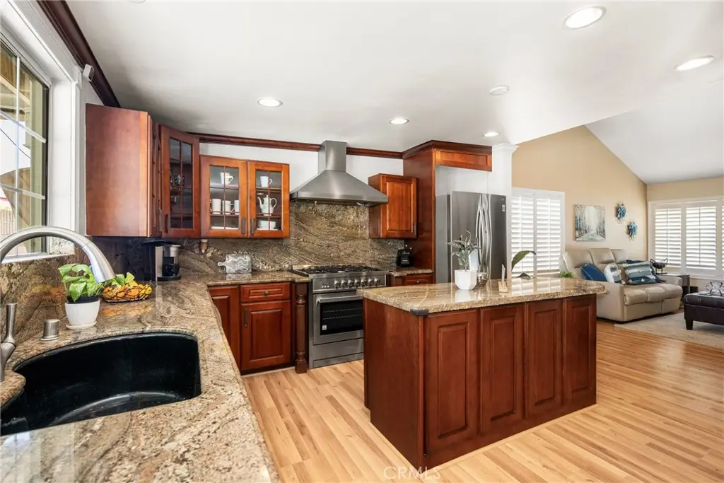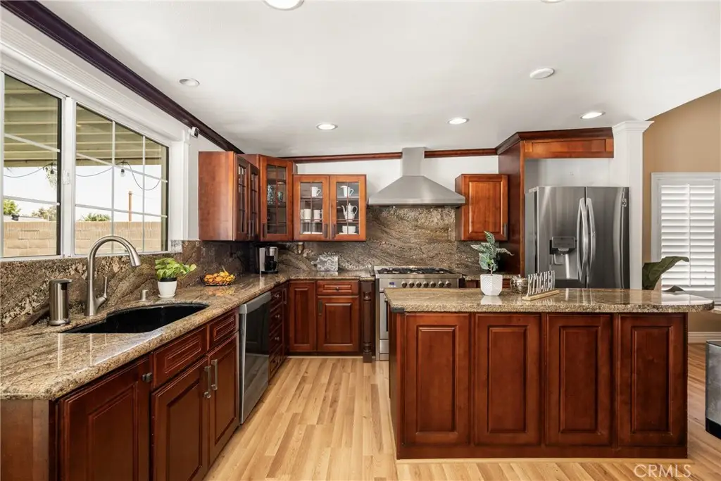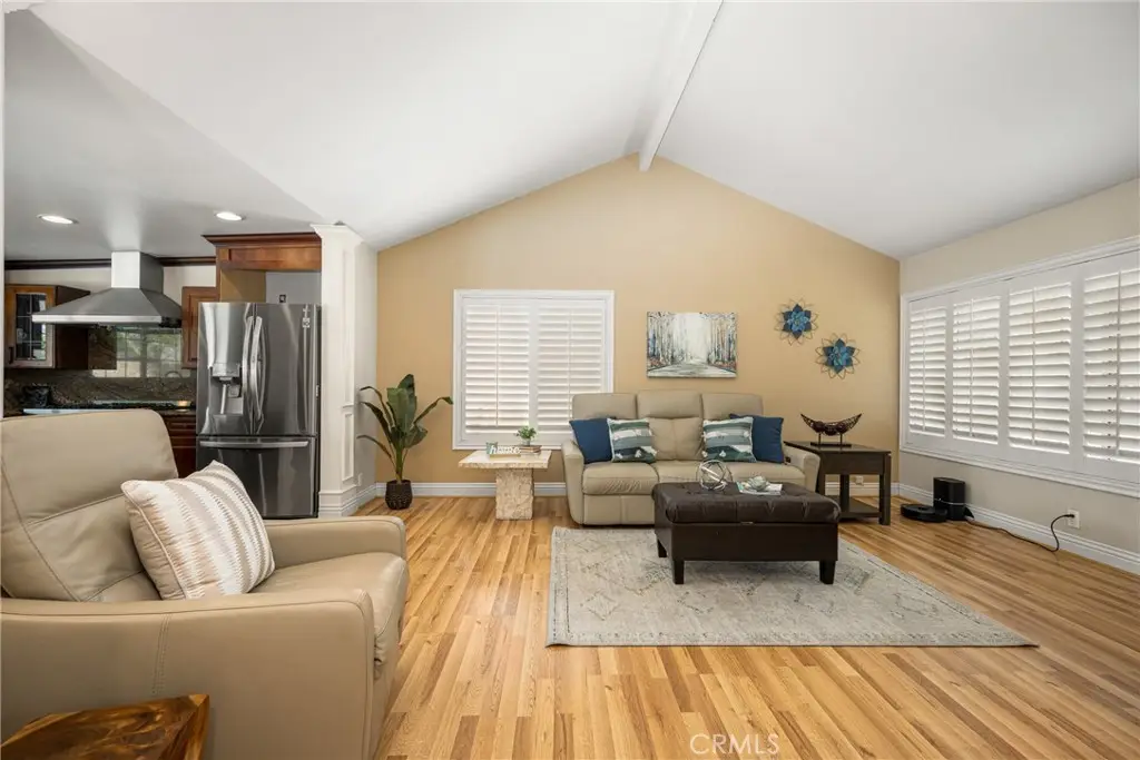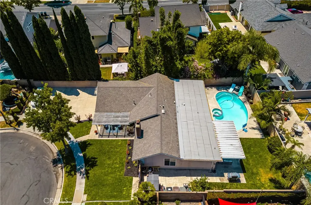 Tucked away in a peaceful Anaheim Hills cul-de-sac, this beautifully upgraded single-story pool home offers 4 bedrooms, 2 baths, and a layout designed for comfort and convenience. The spacious living room features vaulted ceilings, crown molding, wood flooring, a cozy brick fireplace, and plantation shutters. Energy Star-qualified windows and recessed lighting add to the home's efficiency and charm. The updated kitchen boasts granite countertops, a center island, stainless steel appliances, and a pantry--perfect for everyday living and entertaining. French doors in the primary bedroom open to a private backyard retreat complete with a sparkling pool and spa, covered patio, fruit trees, and a side dog run. Additional highlights include mirrored closets, six-panel doors, ceiling fans, a water softener system and wood flooring throughout. With a wide driveway suitable for extra cars or RV parking, a two-car garage equipped with an EV charging outlet, upgraded HVAC system, water softener, roof, house insulation, water heater, energy-efficient pool pump and rain gutters--this home is move-in ready. Located in an award-winning Canyon High School district, within walking distance to Riverdale Park, shopping, and dining, with easy freeway access. No HOA. Welcome Home, this one's ready for you!